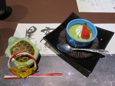 西尾抹茶のプリンと地元のイチゴおいしい。幸せ最後にご懐妊祝いで記念撮影...