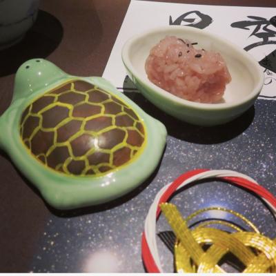 ご懐妊お祝いサービスつると亀のかわいくて縁起良い器に入った赤飯&水引く...