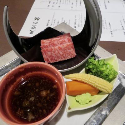 牛肉登場三河牛自分で焼くスタイル岩塩もあり柔らか~い見切れてるけど器が...