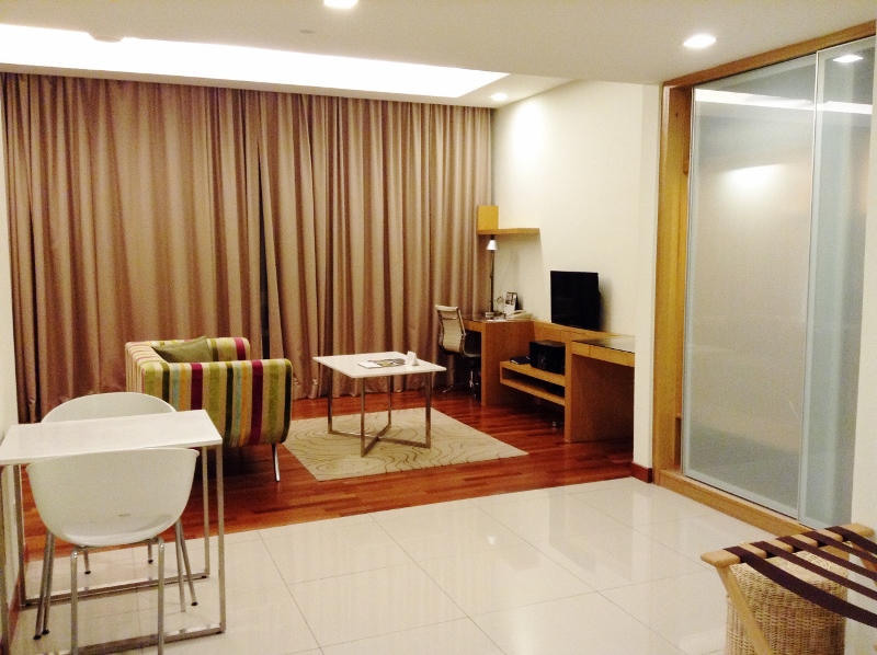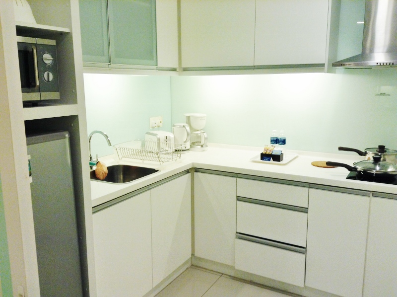 もともと長期滞在者向けのホテルなのでキッチンも完備で暮らしやすい環境。ツインタワーから徒歩5分なのでスーパーや買い物には困りません。、あた、ブキッビンタンへも歩いて行けるので買い物も楽しめます。鉄道を利用する場合も、KLCC駅からどこへでも行けるので、ひとり旅でも心配ありませんでした。近くの通りは夜お店が並ぶ賑やかな通りです。