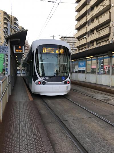 JR広島駅へ向かうため、ターミナルに隣接した路面電車に乗車するが、町の中心部を通って遠回りになるため、途中で後続の電車に乗り換え。