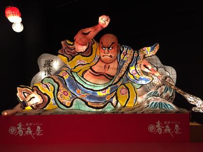 部屋で少し休んでから、温泉に。青森ヒバをふんだんにつかった内湯から、露天風呂の「浮湯」へ。まるで池の中にいるような感覚のお風呂で、ライトアップされた「ねぶた」と「流し灯篭」が幻想的な光景。すっかり長湯することになった。