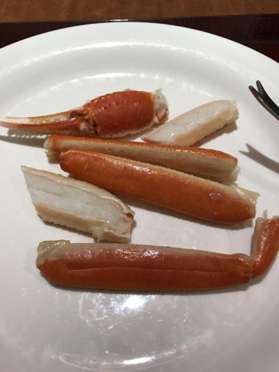 夕食はバイキング形式ですが、和洋中の食材が並んでいます。刺身やズワイガニも食べ放題で、コストパフォーマンスはかなり高いと思います。