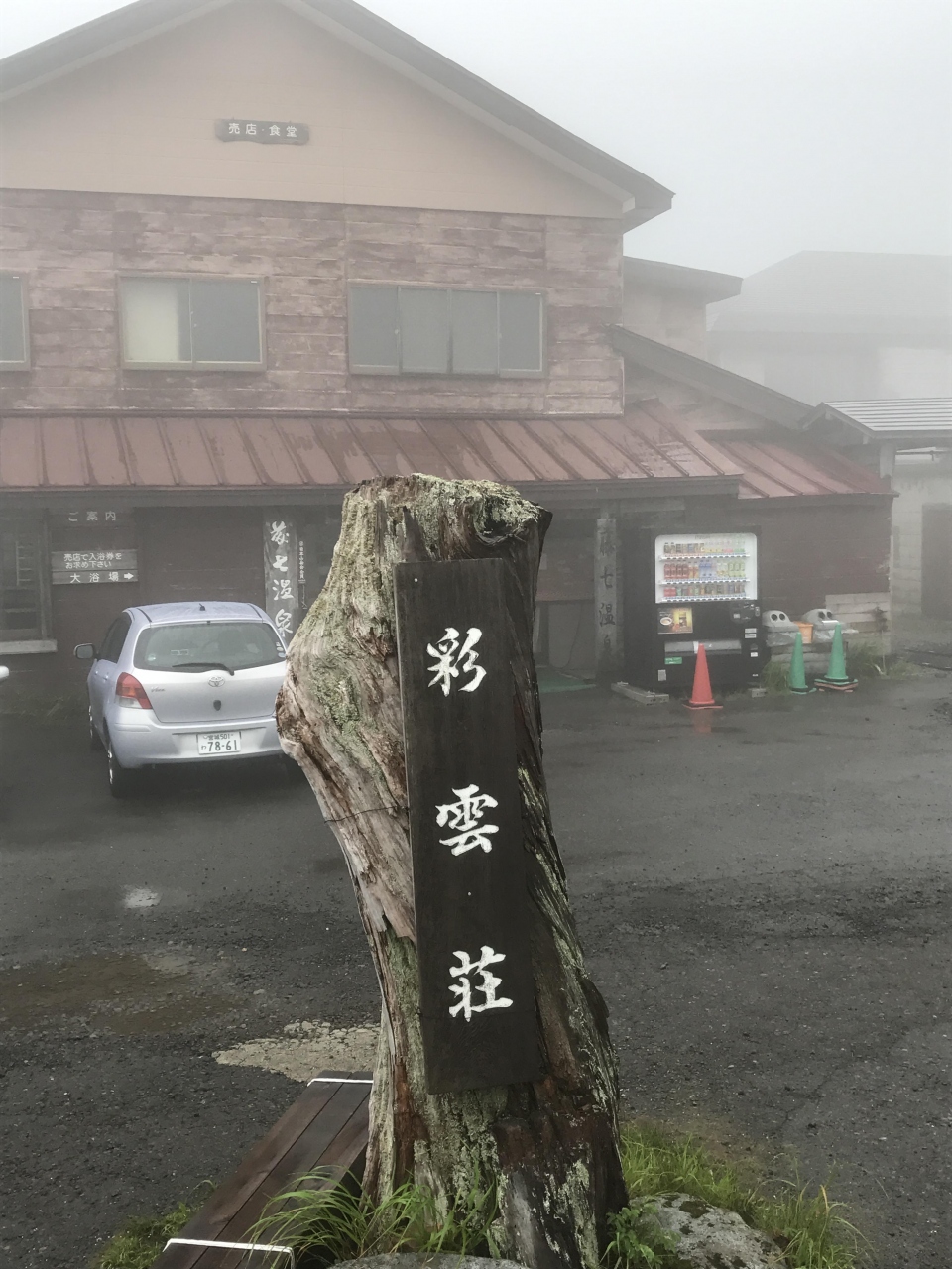 八幡平ハイキングの予定だったが、あいにく頂上近辺は雲の中で、周りはほとんど何も見えず、2時過ぎに予約していた藤七温泉彩雲荘にチェックイン。