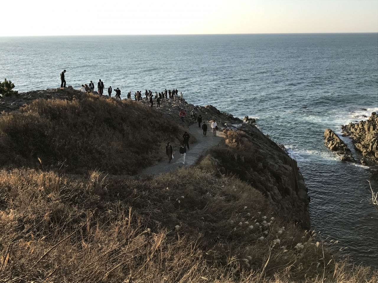 海の中から、2本の岩が突き出ていて、角度を変えて岩と岩を重ねるとハード型に見えるというハートロック付近は写真をとる観光客が大勢いた。かつて、嵐の出演するJALのCMに使用されて一躍有名な観光地になったらしい。- 旅行時期