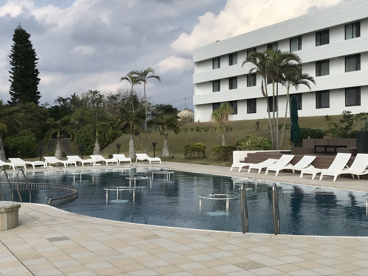 美ら海水族館まで5分の位置にあるプチリゾートホテルで、那覇空港と運天港の間を運行するやんばる急行バスがホテル前に停車する。
