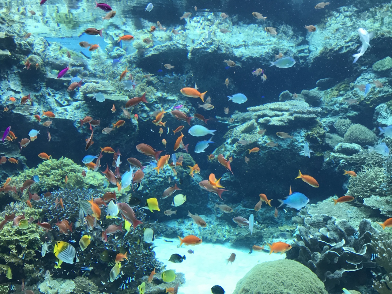 ジンベエザメやマンタの巨大水槽でじっくり時間をとったつもりだったが、館内を一回りしても1時間程度だった。- 旅行時期