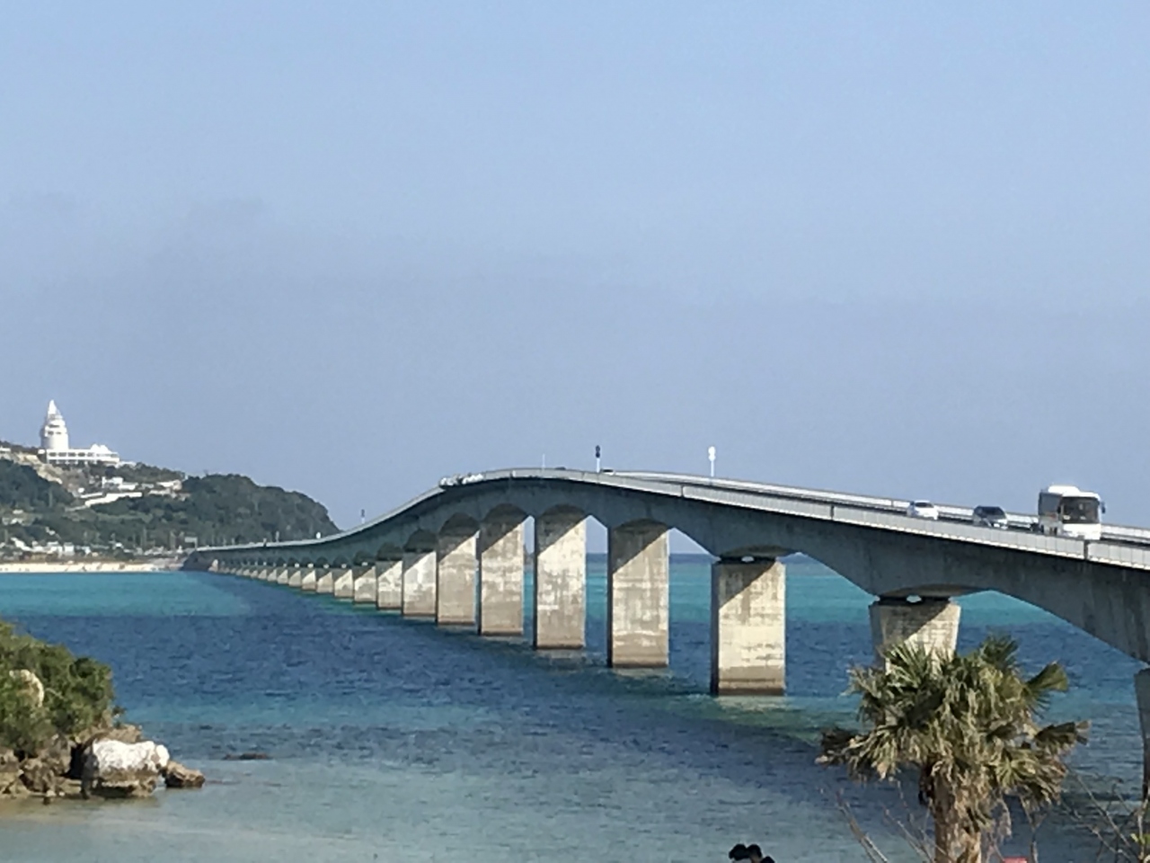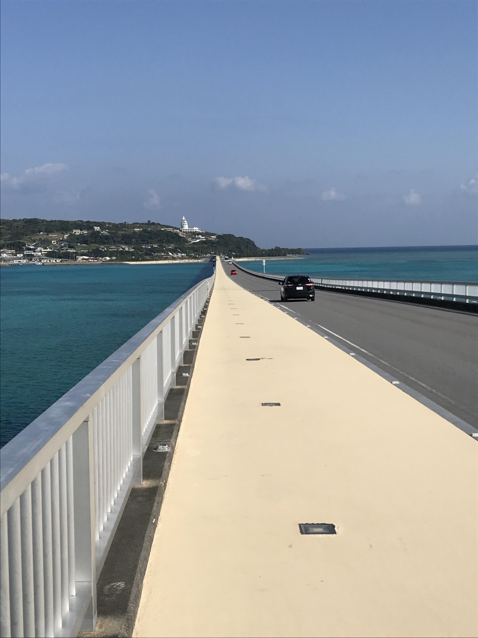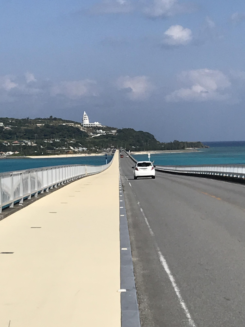 美ら海水族館近くに宿泊した翌日、ホテルのレンタサイクルを借りて古宇利島まで。