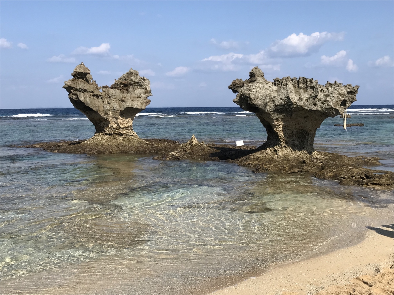 距離にして20キロほどだが思いのほかアップダウンが激しく、古宇利島大橋を渡って、ハートロックのあるティーヌ浜に着いたときは2時間半が経過していた。