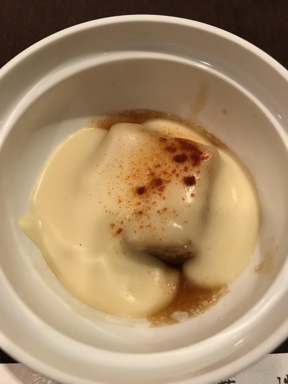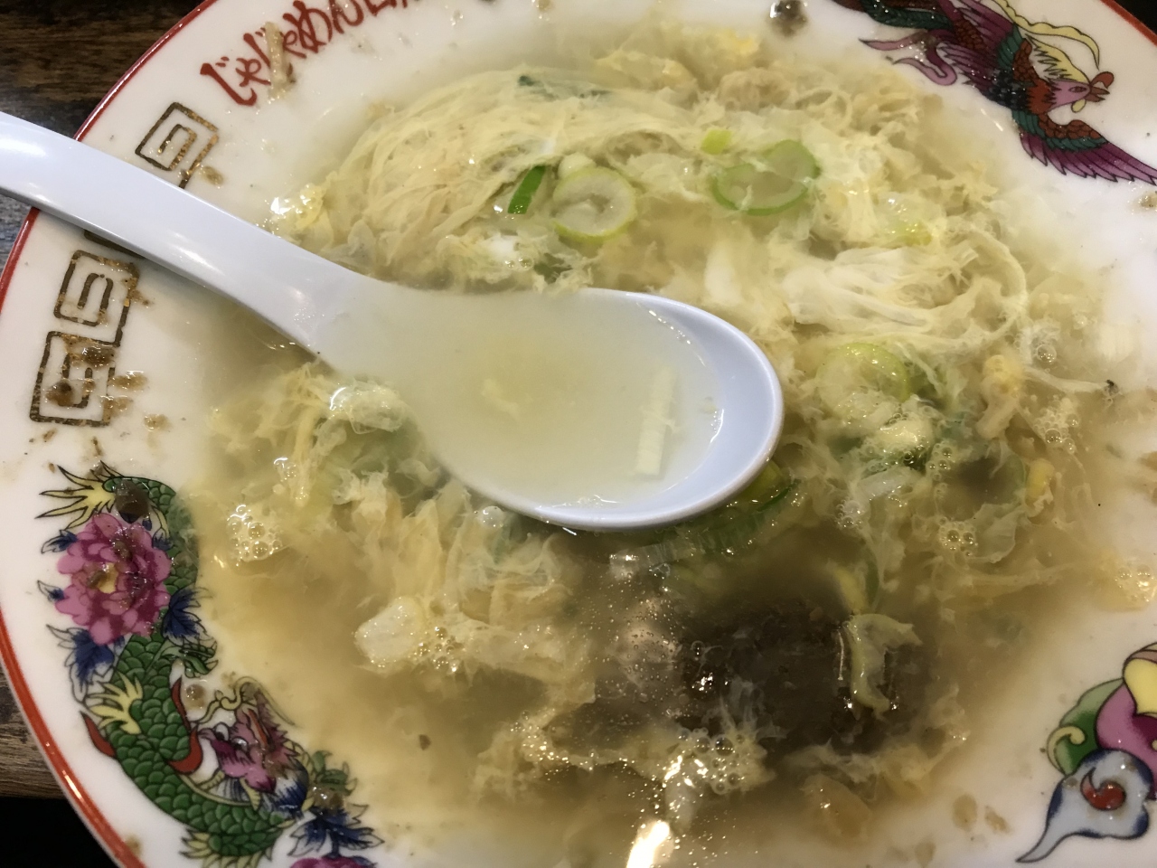 ほとんどのお客さんが、じゃじゃ麺を食べ終わった後に、残ったスープに生卵を入れて、それを店員に手渡すと、スープや肉味噌が追加されて、玉子スープになってくるのを注文している。ちいたんたん(50円)というものらしい。他のお客さんに倣って、こちらも注文。- 旅行時期