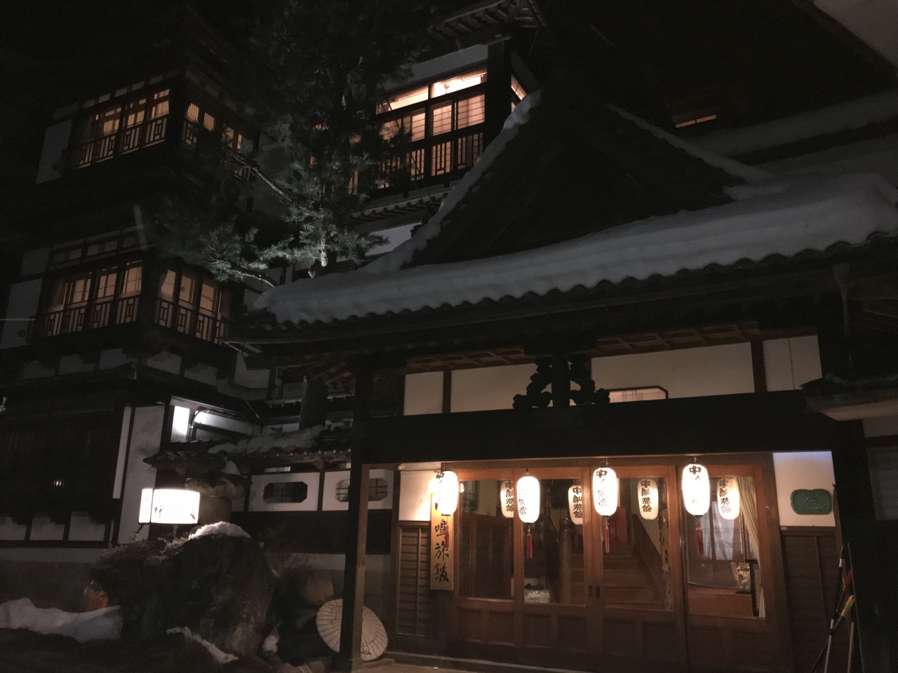 昭和3年宮大工建築の木造4階建てで、新日本100名湯に選ばれた岩風呂の紹介文に魅せられて、予定外の延泊をすることにした。