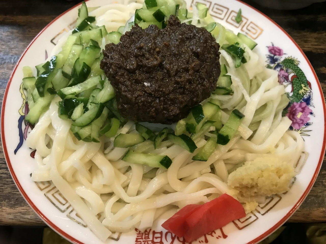 じゃじゃ麺の専門店。カウンターが10席ほどと、4人掛けのテーブルが3つ。非常に狭い店内はほぼ満員で、カウンターに着席。