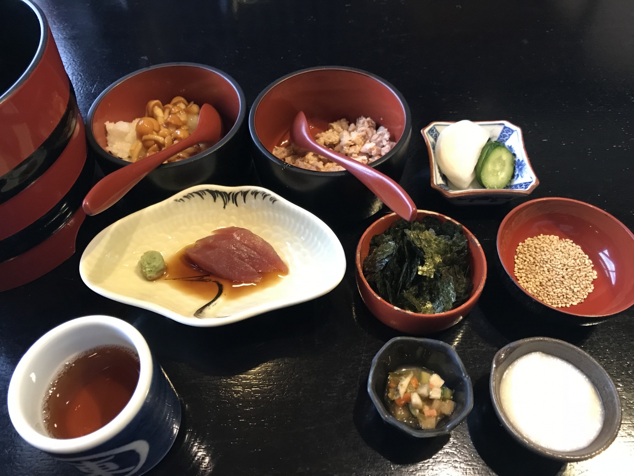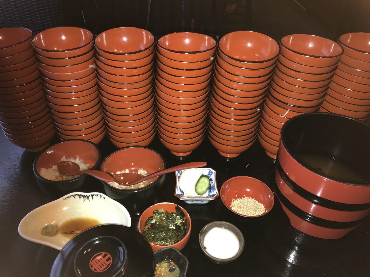 わんこそばには、2つのコースがあり、高い方(3240円)は薬味が多い(9種類)のと、お椀を重ねて数えるのだそうで、せっかくなので、「インスタ映え」する方のコースを選択。
