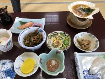 旅館と民宿の中間にあるような宿ですが、親子二代の漁師の宿というだけあって、夕食は海鮮づくし。朝食はバイキングスタイルですが、コスパ良好です。