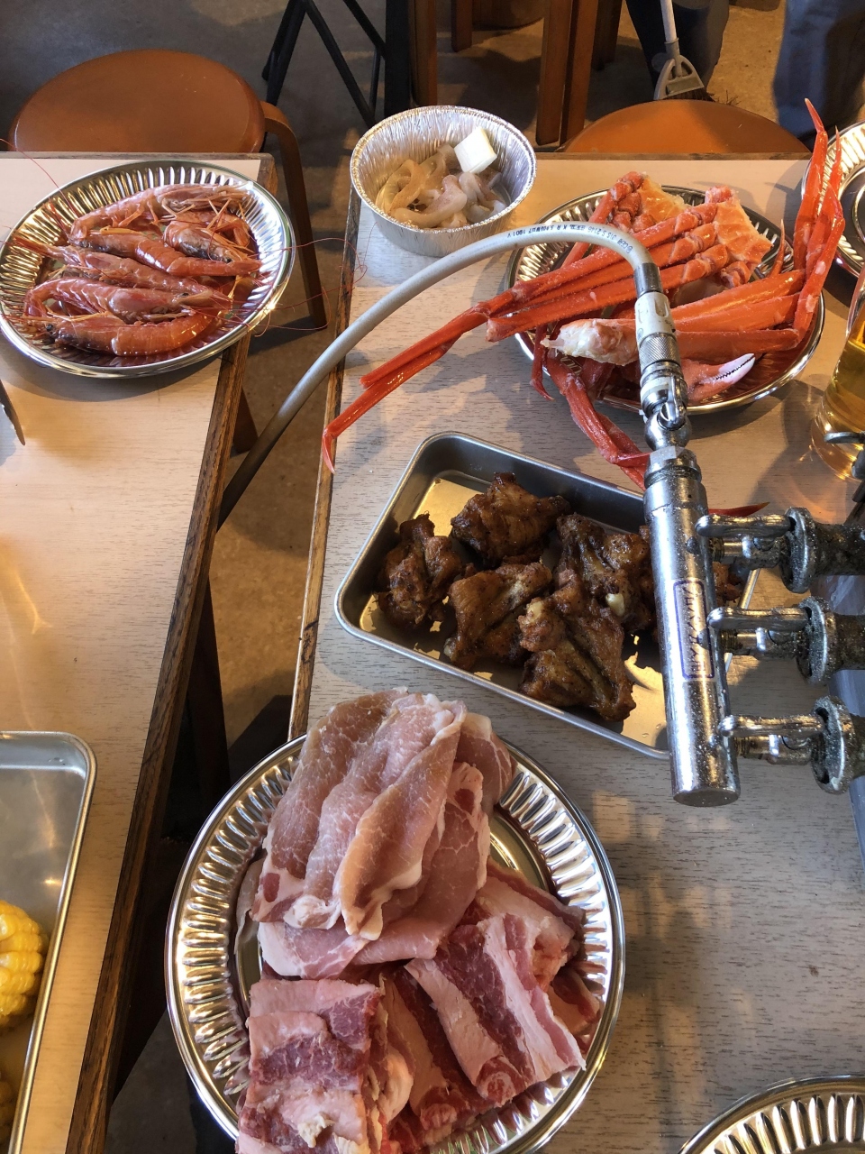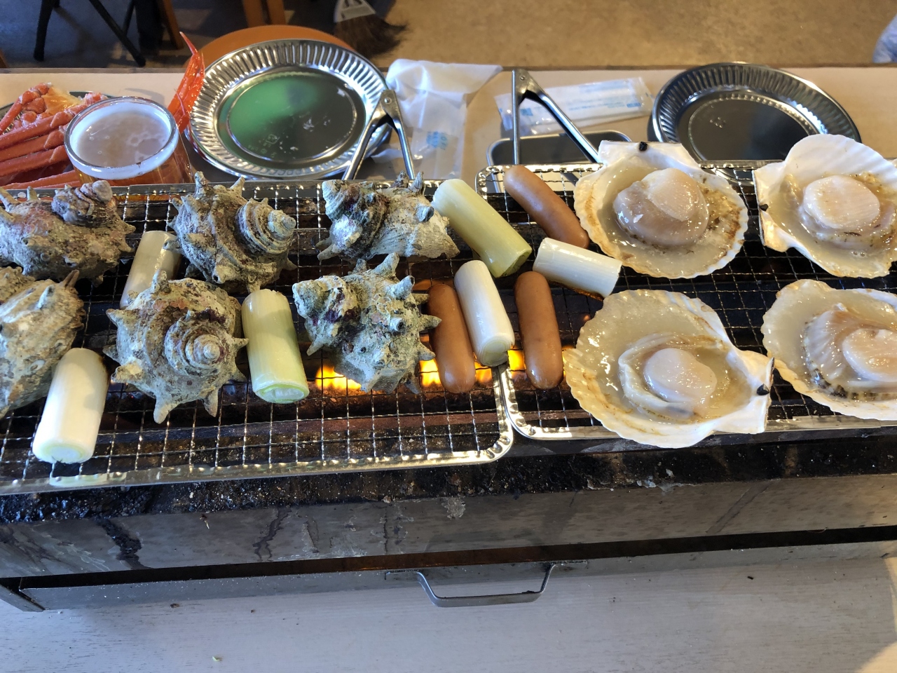 メインは、牡蠣、ホタテ、サザエ、ハマグリといった貝類のバーベキューですが、肉や野菜も豊富、自分で具材を組み合わせる海鮮丼やデザートもあり、90分食べ放題で税込み3080円とリーズナブル。ソフトドリンクも飲み放題ですが、アルコール類は別料金。