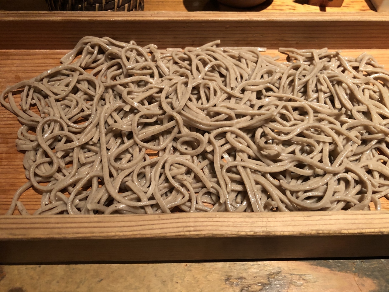 田舎そばは、よくある太麺ではなく、他のそばと同じようにつるっと食べられる。