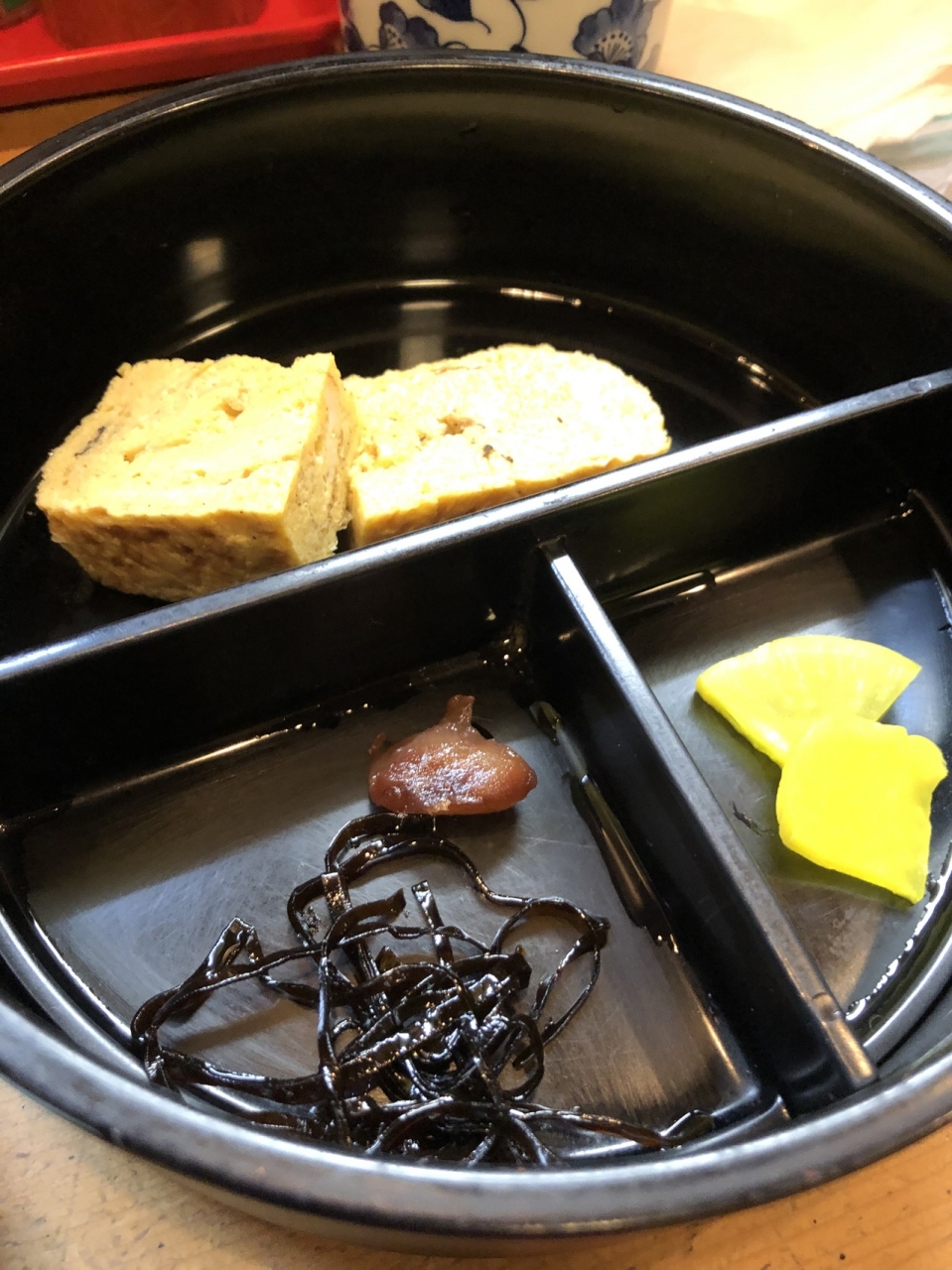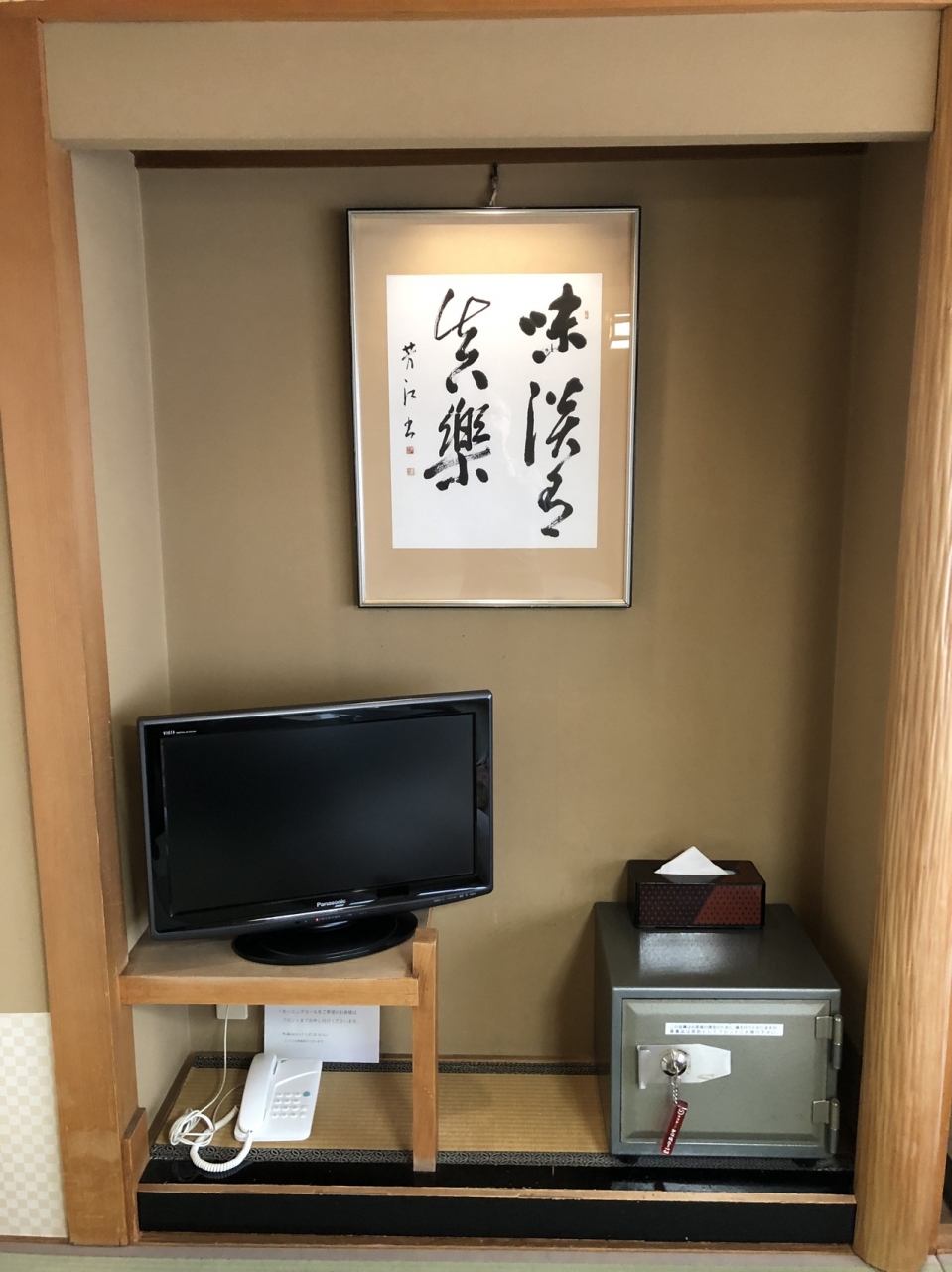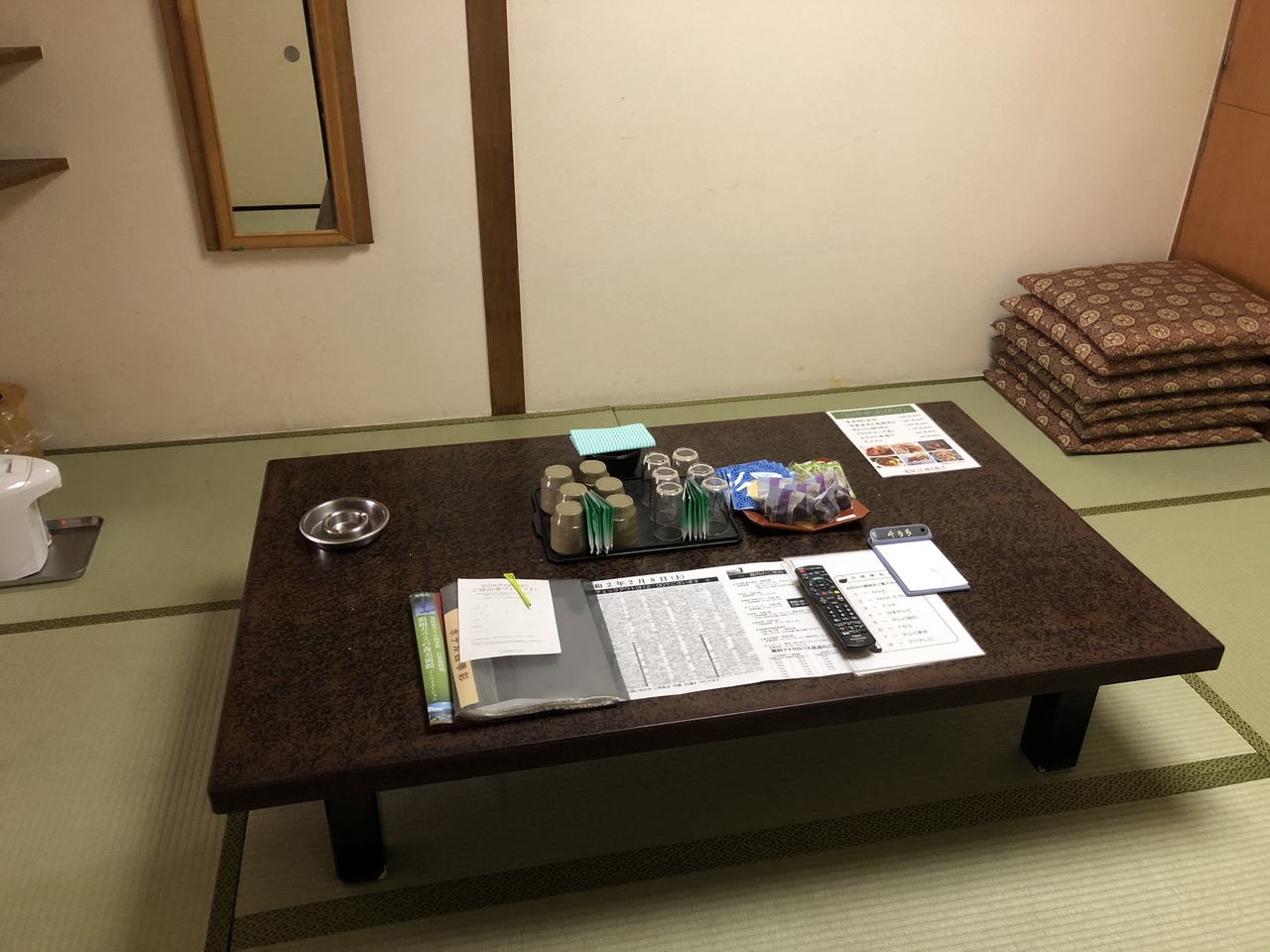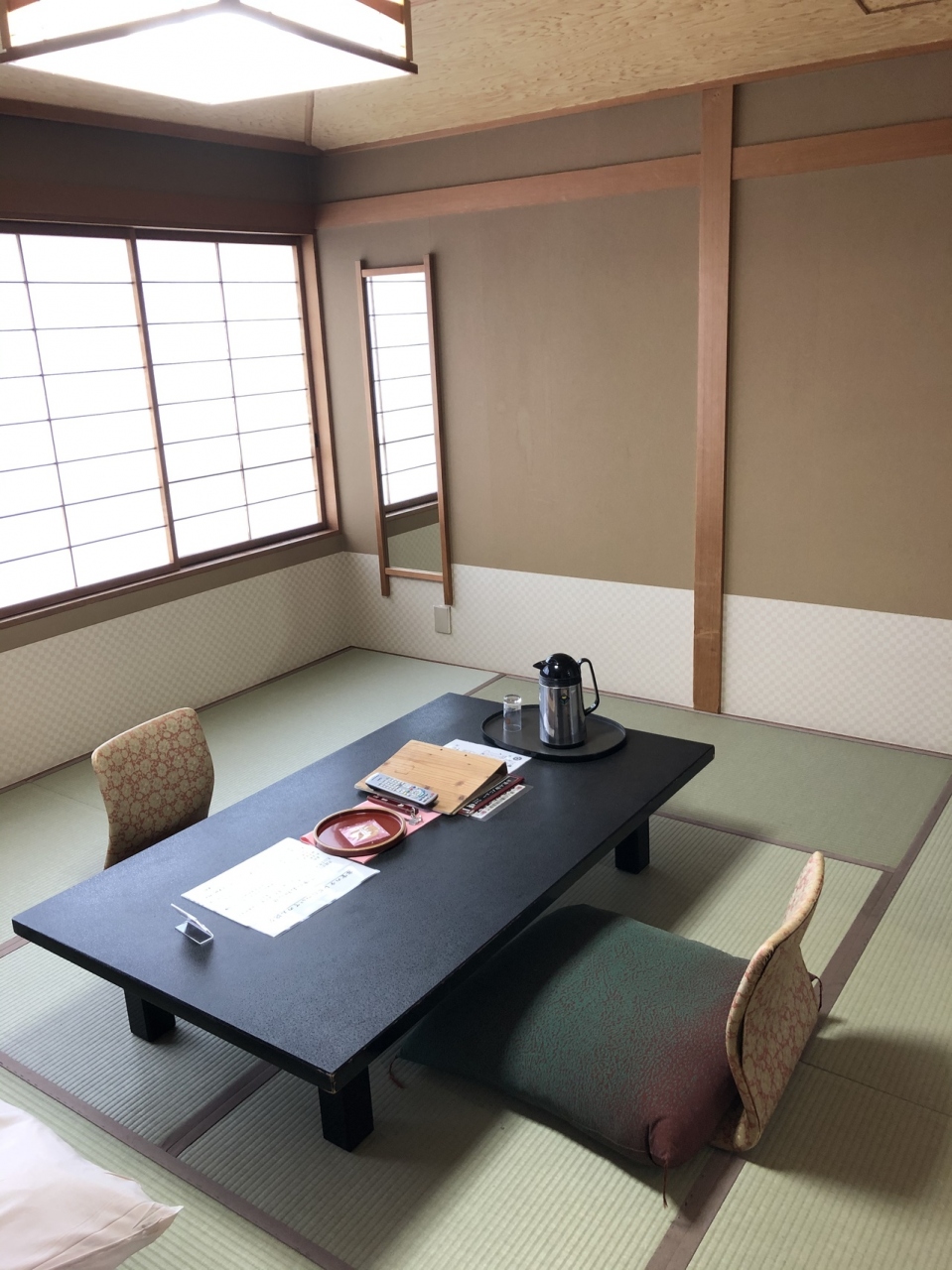 山歩きメンバーの定例会で珍しく宿泊に利用した宿。6名で一部屋だったが、あらかじめ布団の敷かれていた和室の他、テーブルと椅子のエリアと、こじんまりとした和室があり、広さは十分。