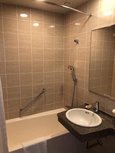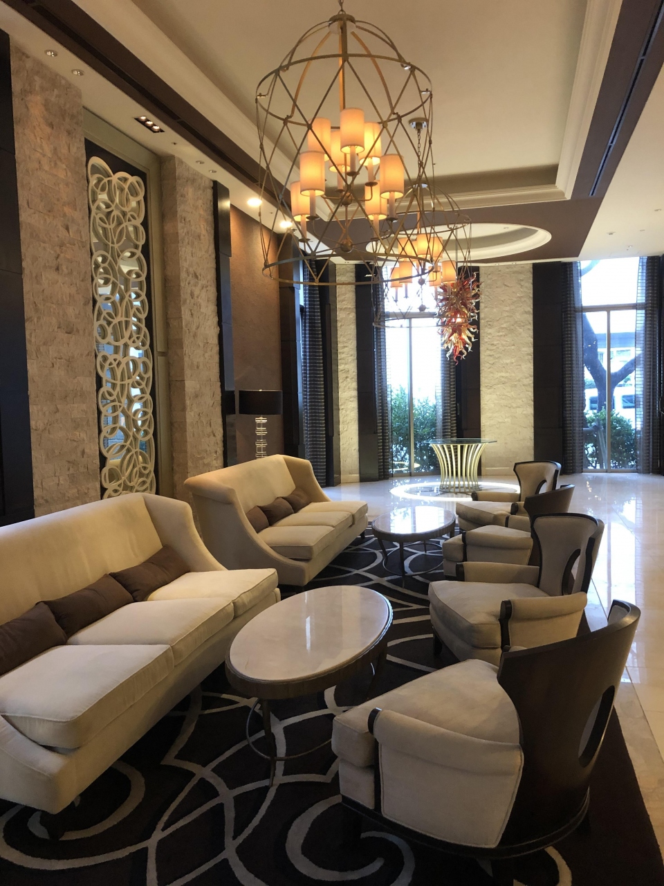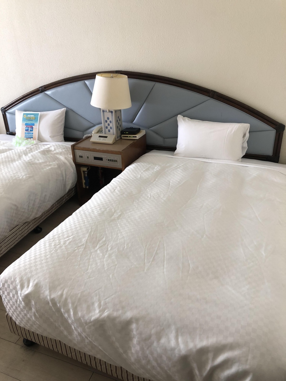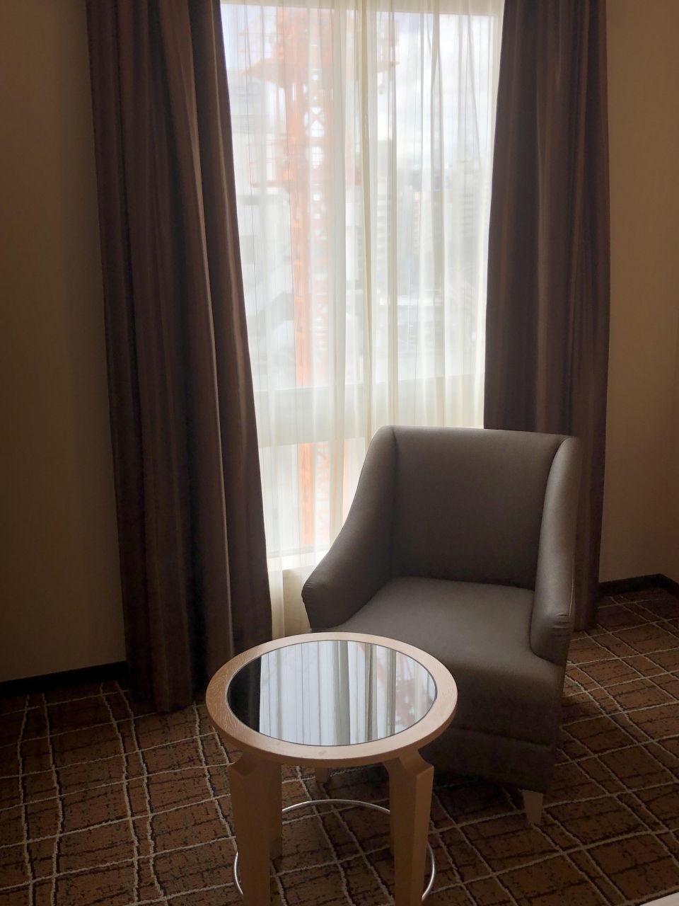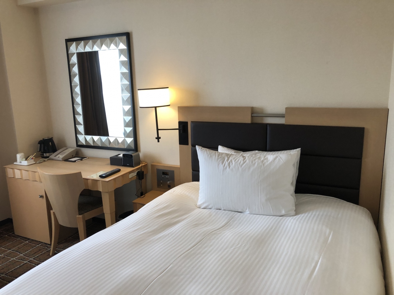 ホテルの内装は高級感のある落ち着いたイメージ。ダブルベッドの部屋はさほど広くはありませんでしたが、一人で過ごすには問題ありません。