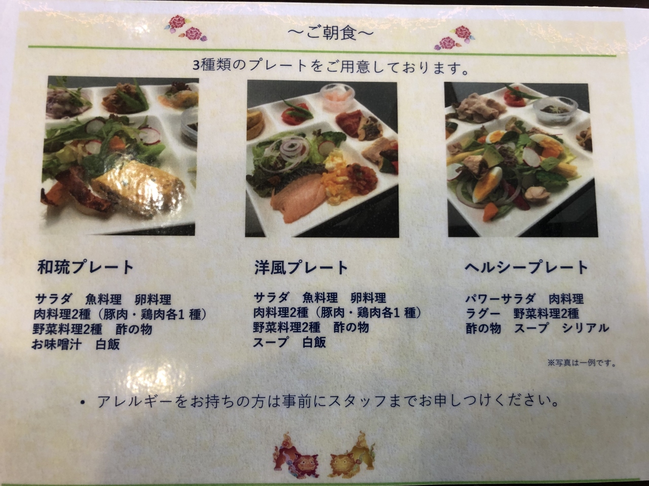 新型コロナ感染対策だと思いますが、朝食はビュッフェではなく、3種のプレート(和琉、洋風、ヘルシー)から選択するようになっています。- 旅行時期