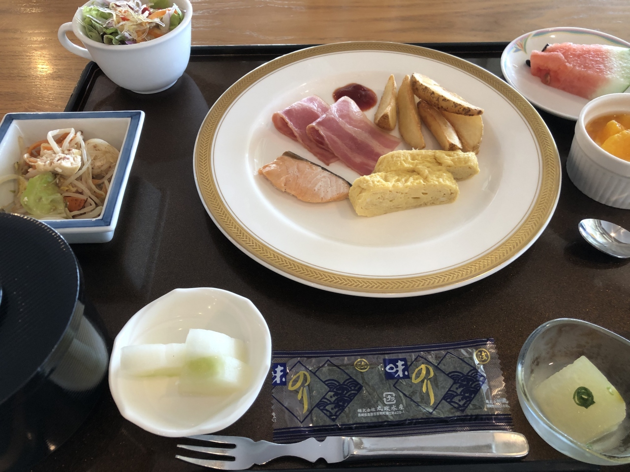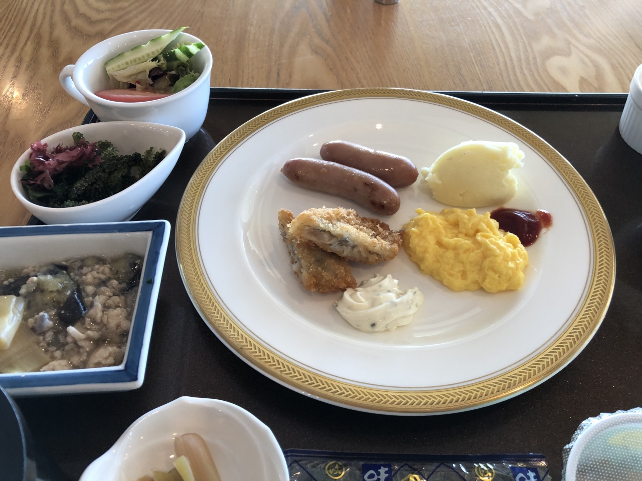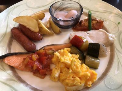朝食は新型コロナ感染対策で、ビュッフェではなく、テーブル毎に配膳される形になっていた。2連泊したが、日によってメニューは変わっていた。尚、ランチは休業中、ディナーは前日予約となっていたが、平日(木・金)でお客さんは誰もいなかった。