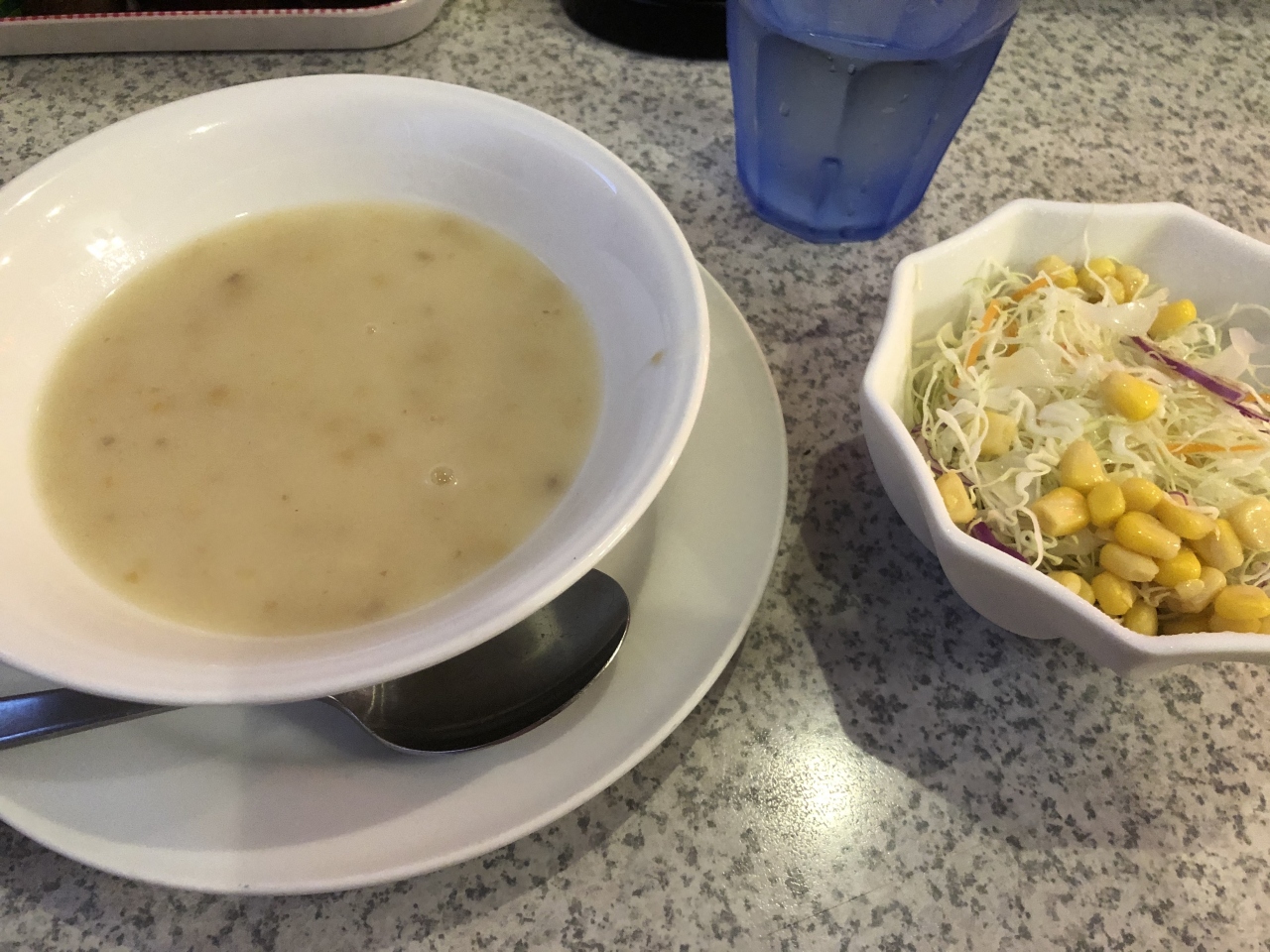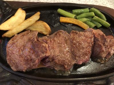定番のテンダーロインステーキ200gをレアでいただきます。脂身が少ないので200gでも食べ応え十分。スープ、サラダ、ライス(またはパン)がついて、2300円とリーズナブル。