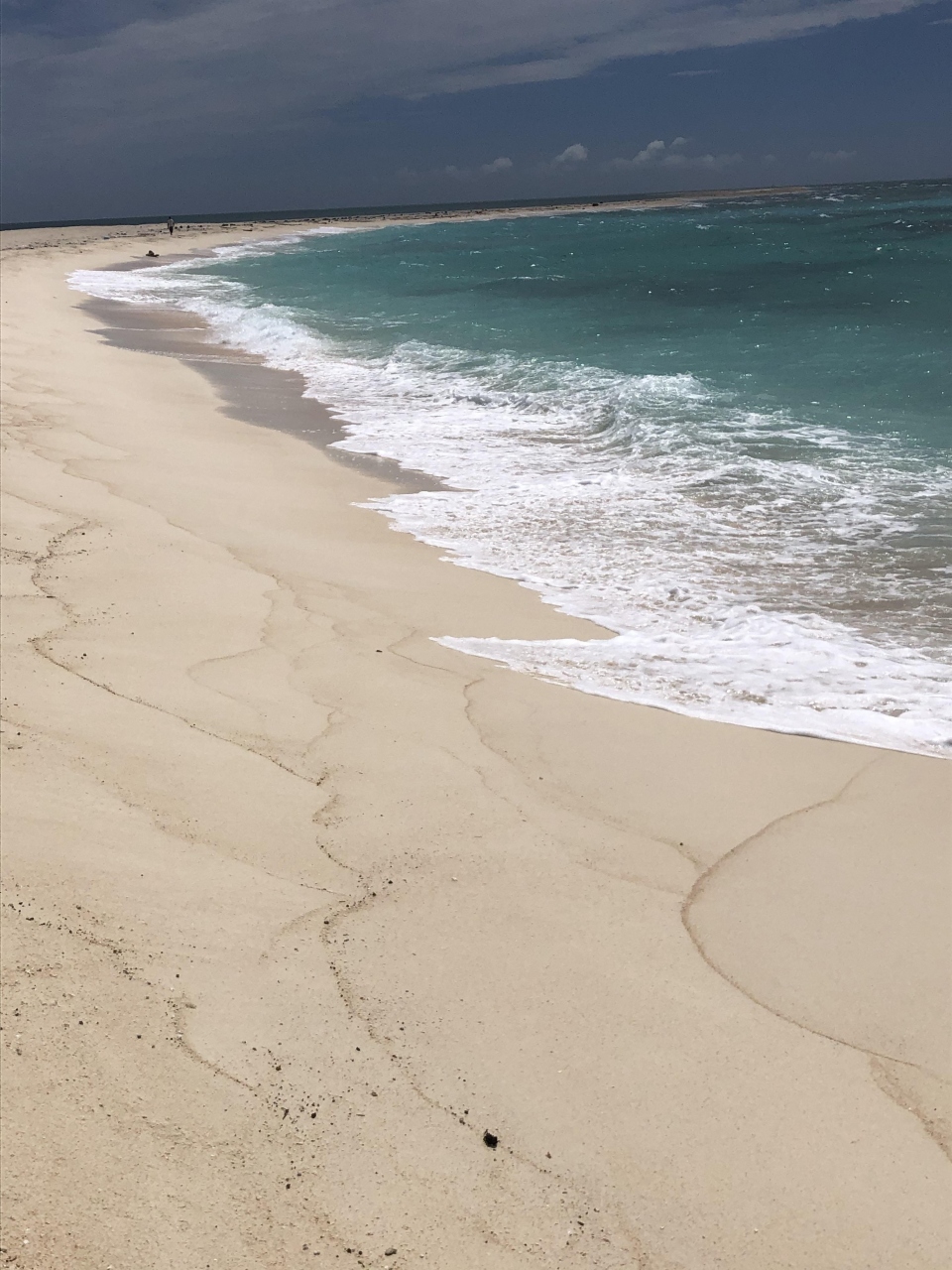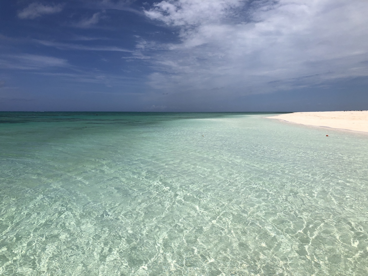 久米島の東に、7kmにわたって続く砂浜だけの島です。メーヌ浜、ナカノ浜、奥の浜(ハテの浜)の3つの砂州の総称として、ハテの浜と呼ばれるようです。