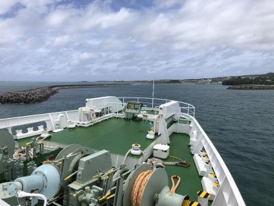 船着き場までマイクロバスで移動し、そこからボートで20分でハテの浜に上陸。