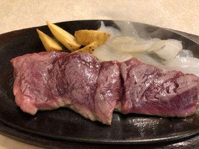 テンダーロイン200gがサラダ、スープ、ライス付きで2300円。これをレアで注文。