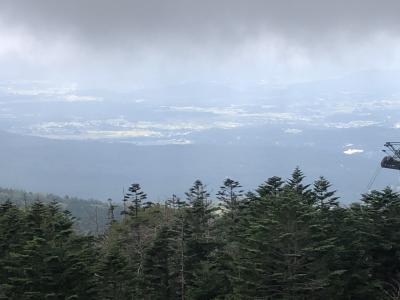 スイスの山小屋風の山麓駅から、100人乗りのゴンドラに揺られて7分で山頂駅に到着。ここの展望台からは、北・中央・南アルプスが一度に見られるようだが、この時は完全に雲の中に入っていて周りの眺望は全く見られず残念。