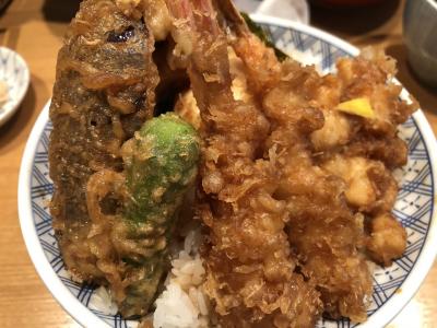 しばらくして、台の前から渡されたどんぶりには、海老2尾、茄子、舞茸、イカ、スナップエンドウ、海苔、卵がぎっしりと敷き詰められたもの。どんぶりは上底になっていてご飯の量はさほど多くはないが、これだけの味、量でこの値段なら、また行ってみたくなります。- 旅行時期