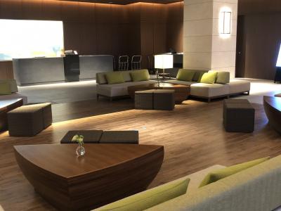 ラウンジに入ると、白木の壁に囲まれたような明るい空間で、とてもオシャレな雰囲気に一新されていた。広さも従来の2.5倍になったらしく、長い時間でもゆったりと過ごす事が出来る。- 旅行時期