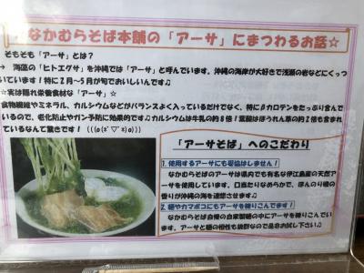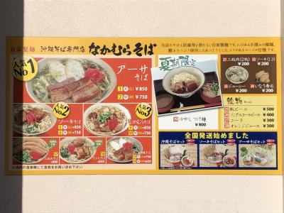 万座ビーチと瀬良垣ビーチの間にある、沖縄そば専門店。この辺りでは結構有名な店のようで、そばセットの全国発送も行なっている。