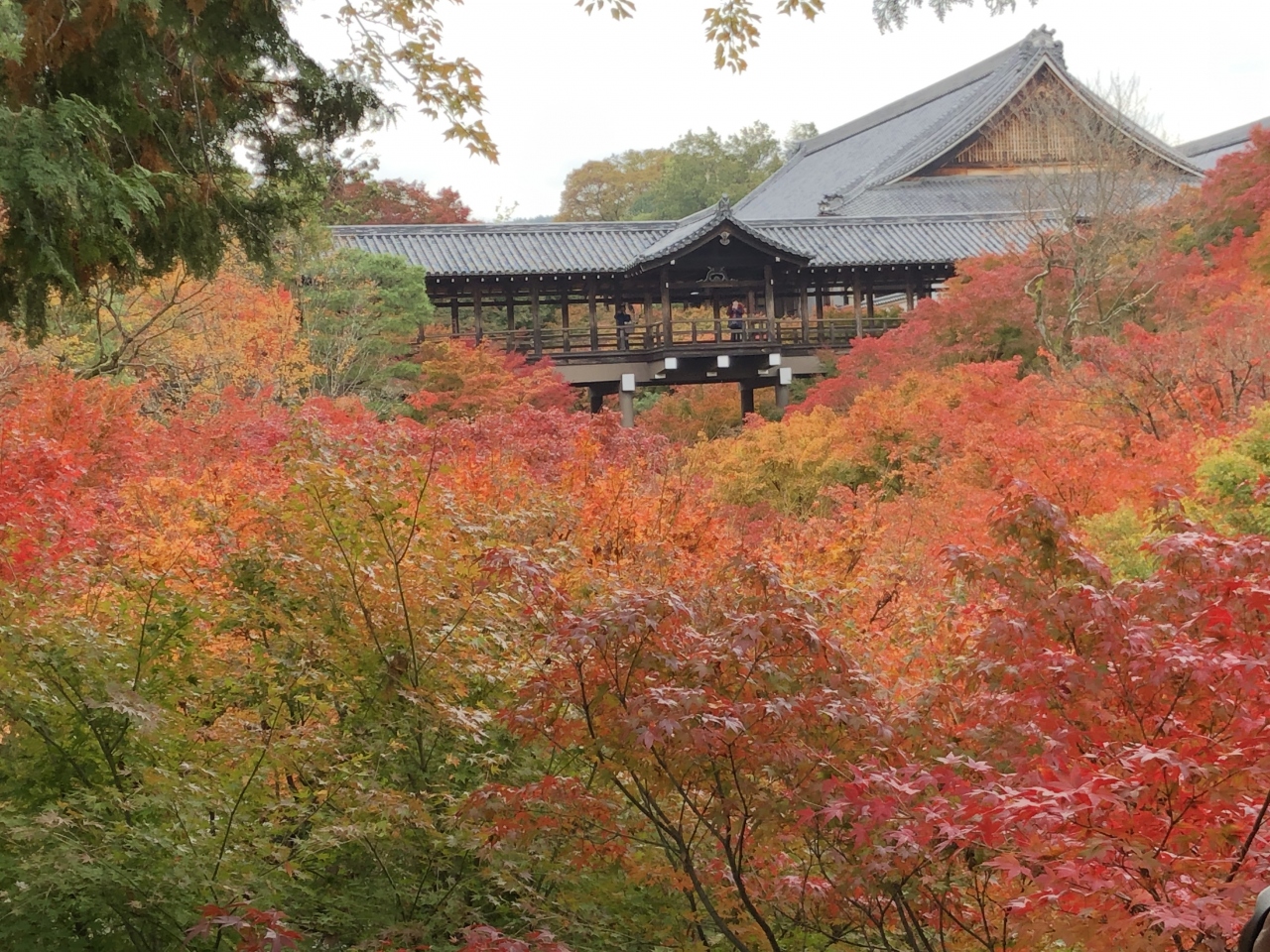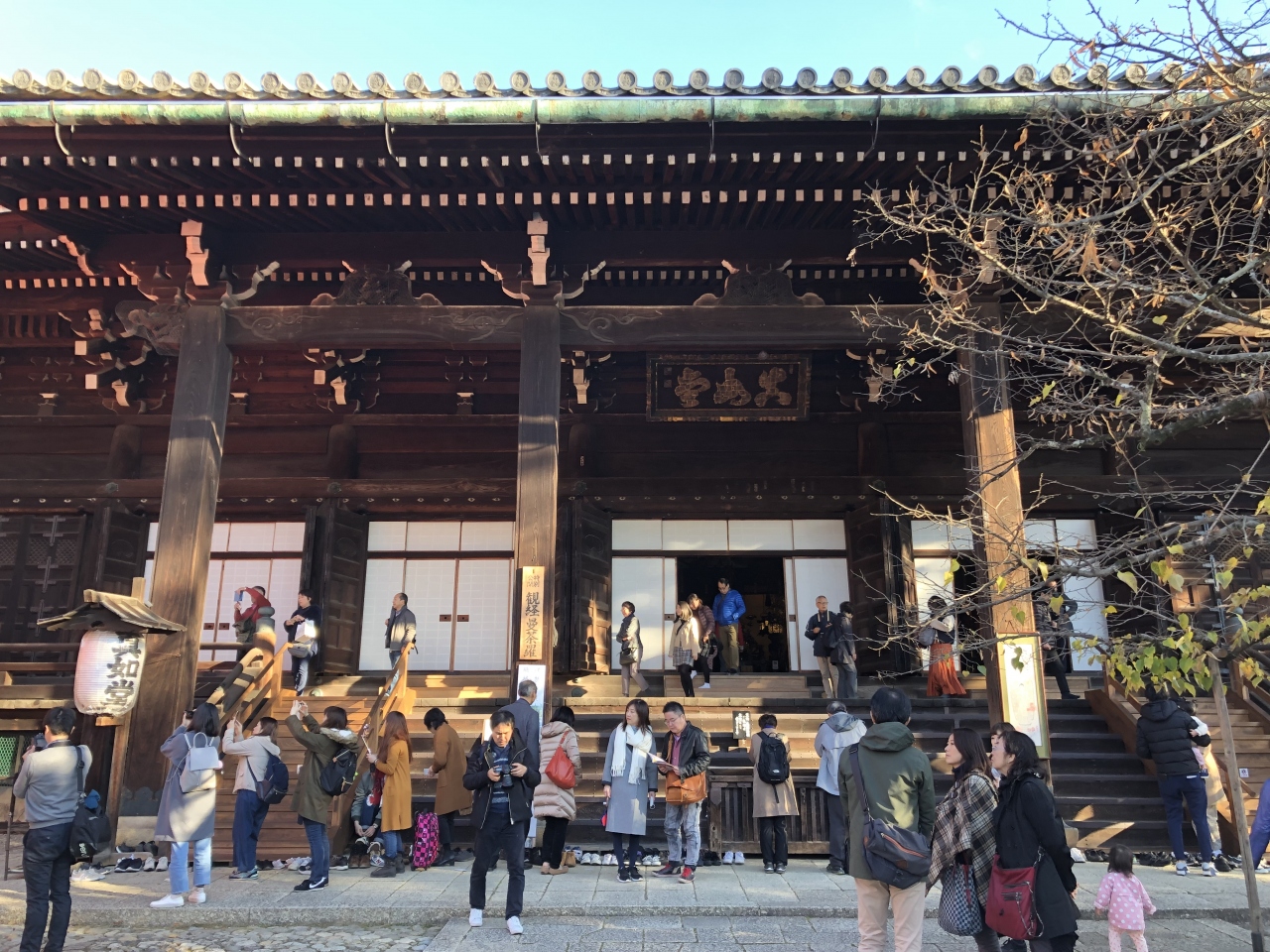 10年ぶりの秋の京都で、最初に訪れたのは、京都の中でも屈指の紅葉スポット・東福寺。8時半からの開門のため8時前に東福寺に辿り着くが、すでに臥雲橋の先まで行列ができていた。ようやく寺院の敷地内に入るも、拝観券売場まで長蛇の列が続く。