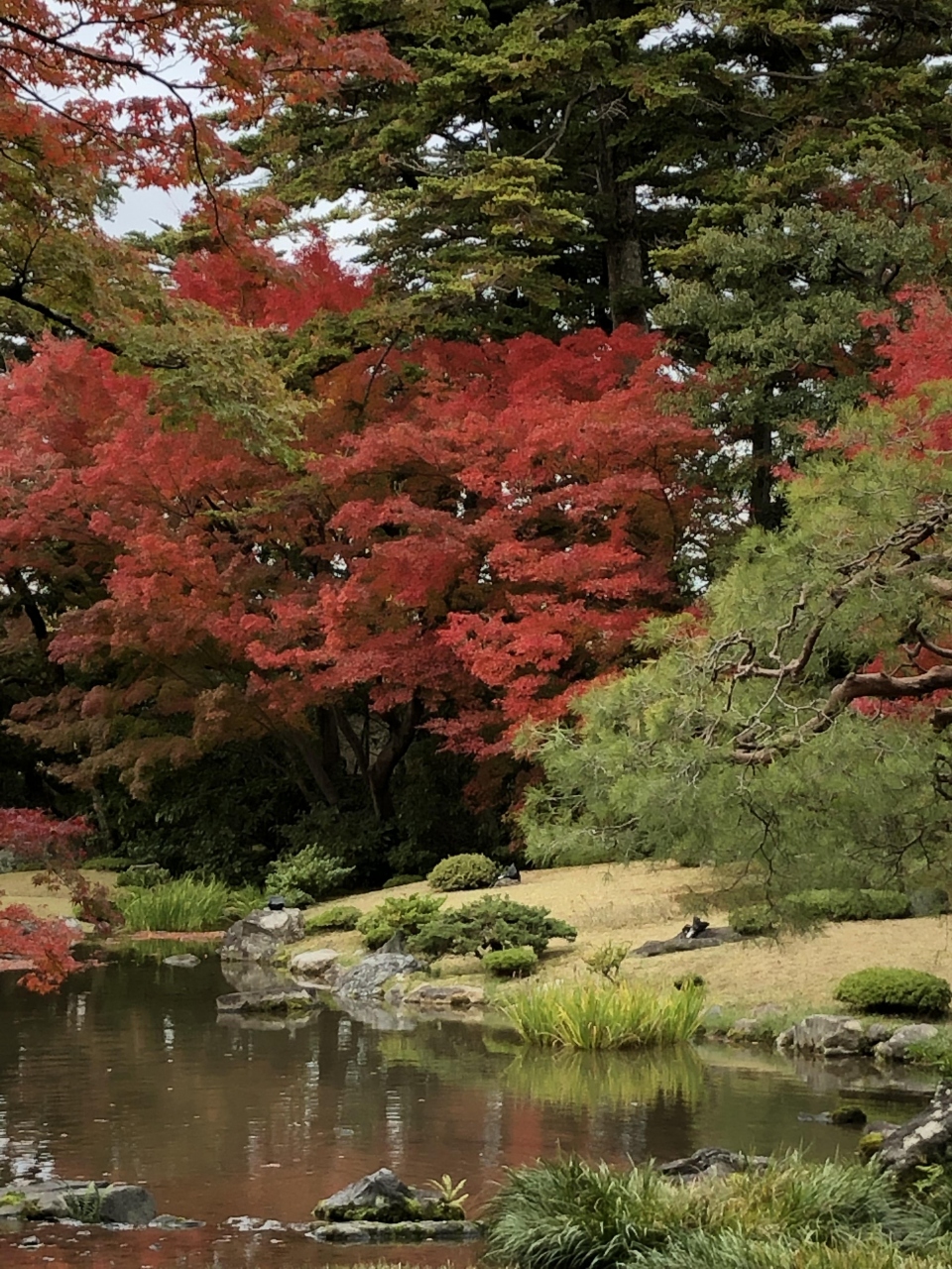 回遊式庭園の紅葉や苔も美しい。- 旅行時期