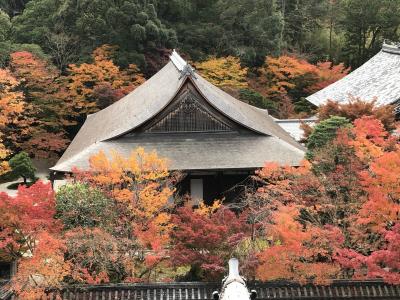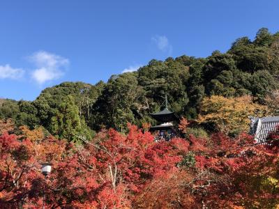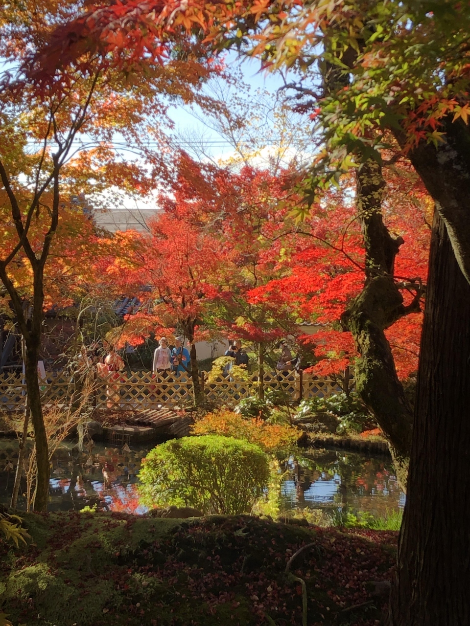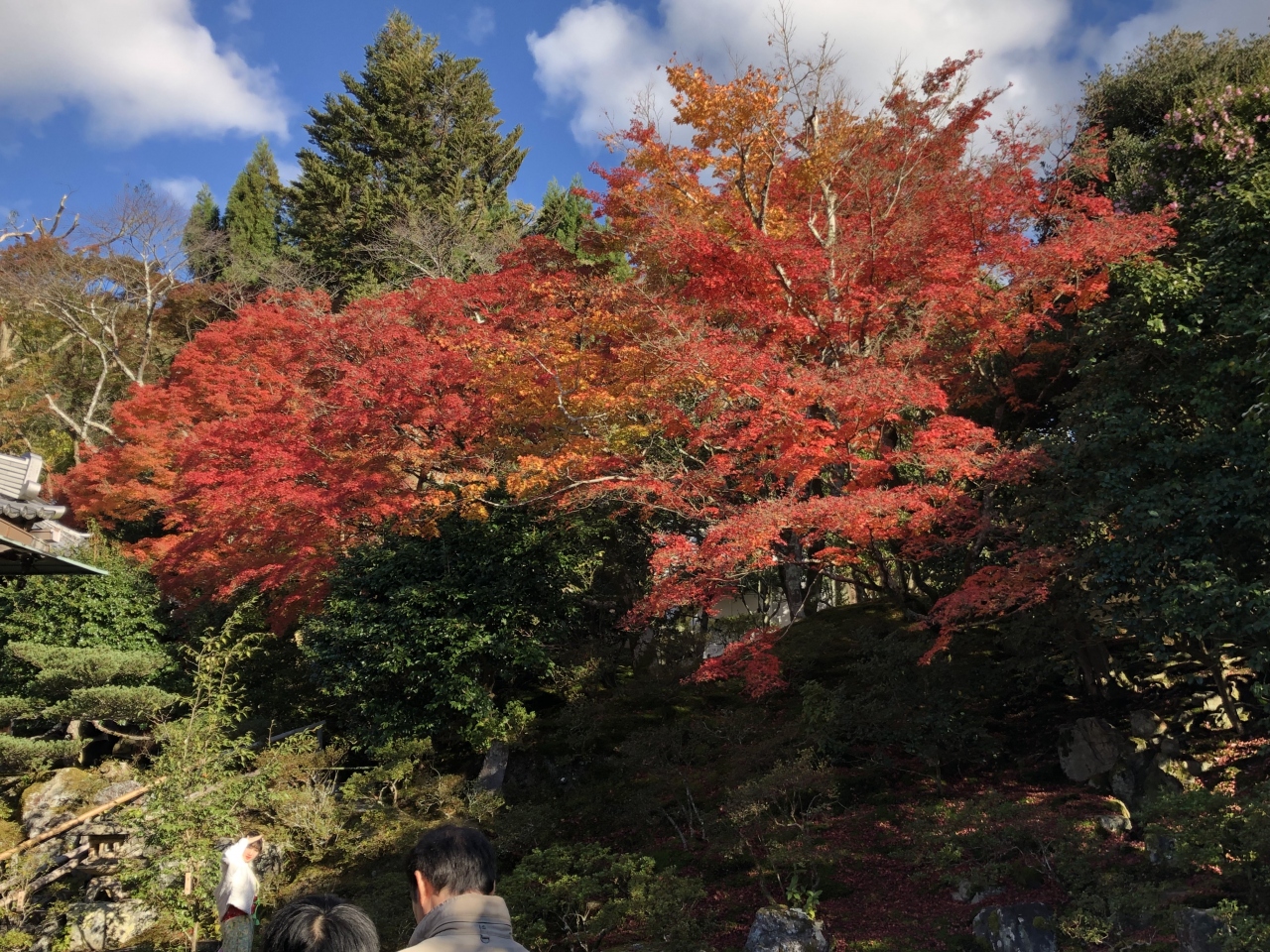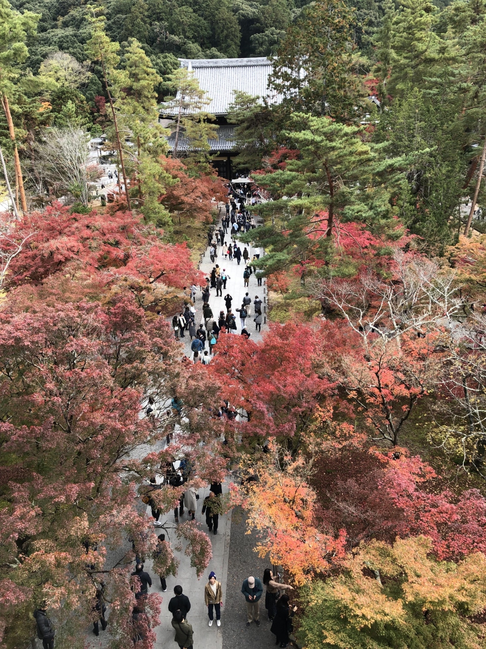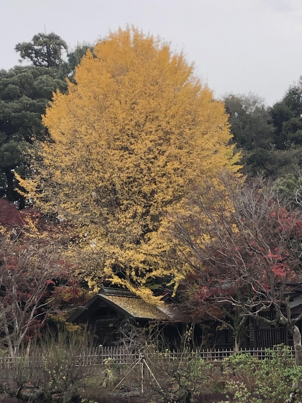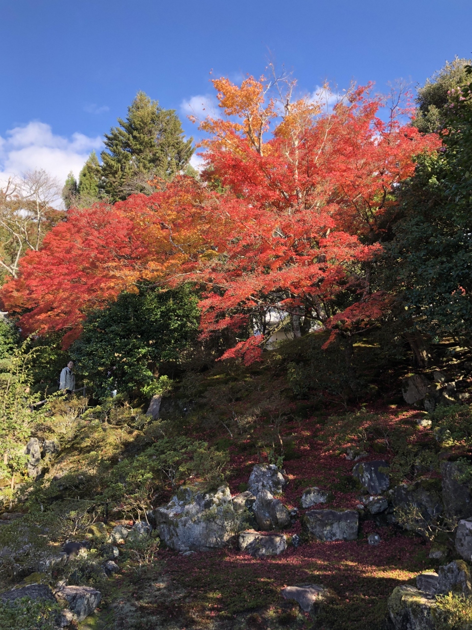思った以上に広い境内の中を歩くと、色とりどりの紅葉で、特に落ちた黄色・赤色の葉っぱのコントラストが美しかった。