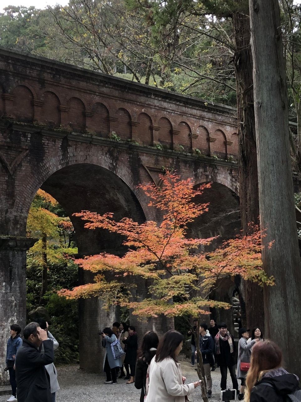 山門を降りてから、琵琶湖疎水の水を運ぶ煉瓦製の水道橋付近へ。この辺りもカメラを構える人が多い。- 旅行時期