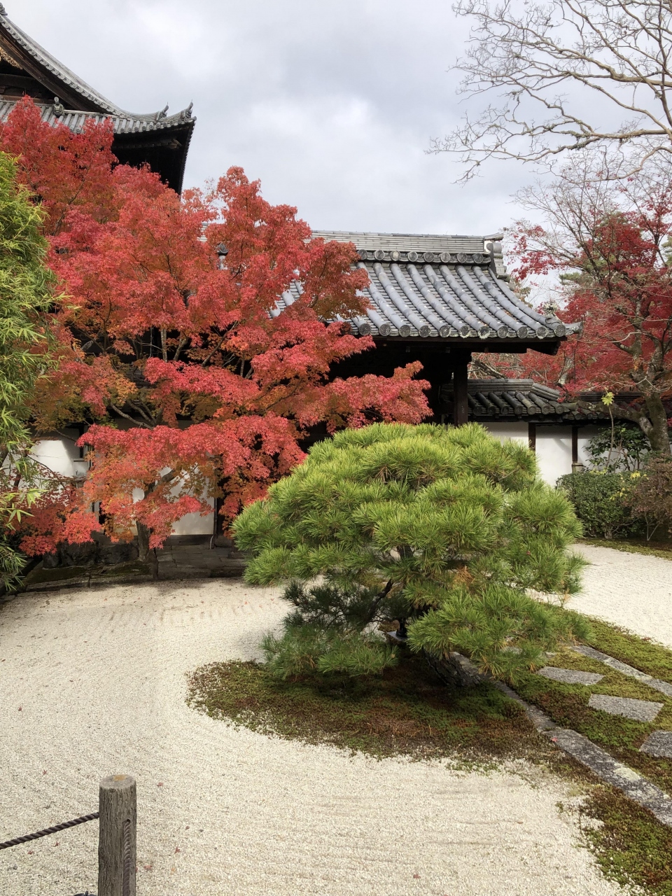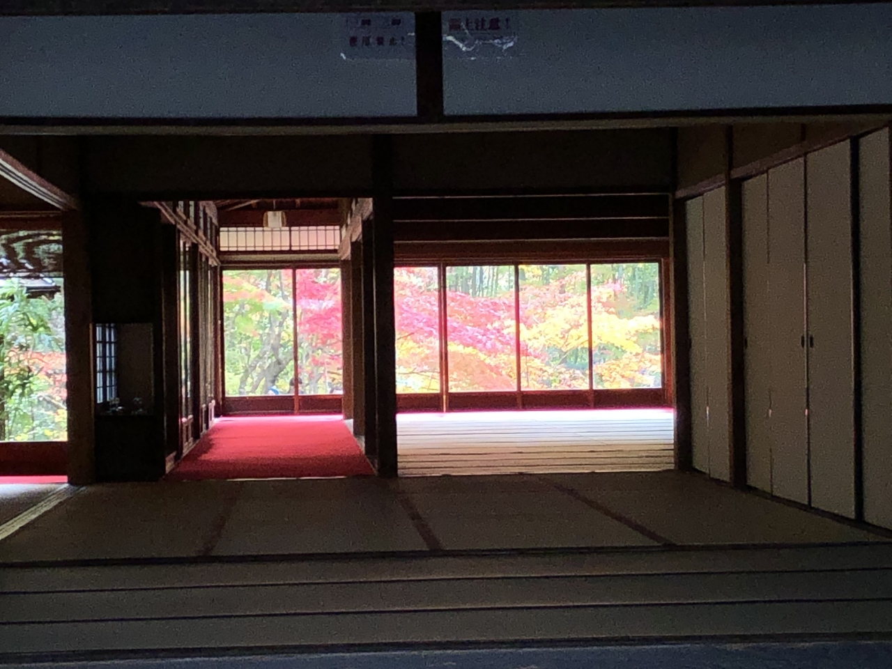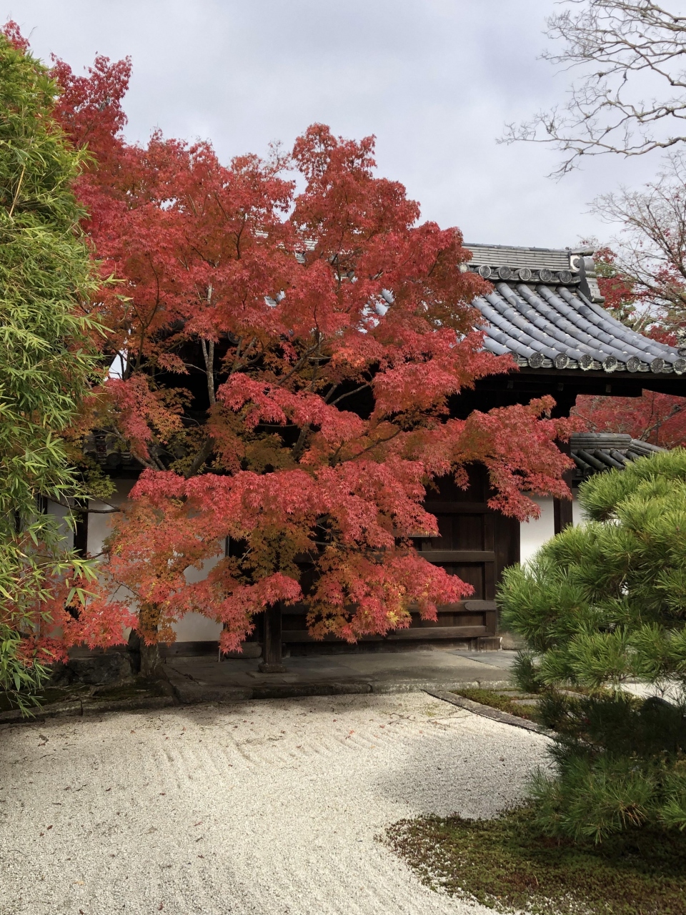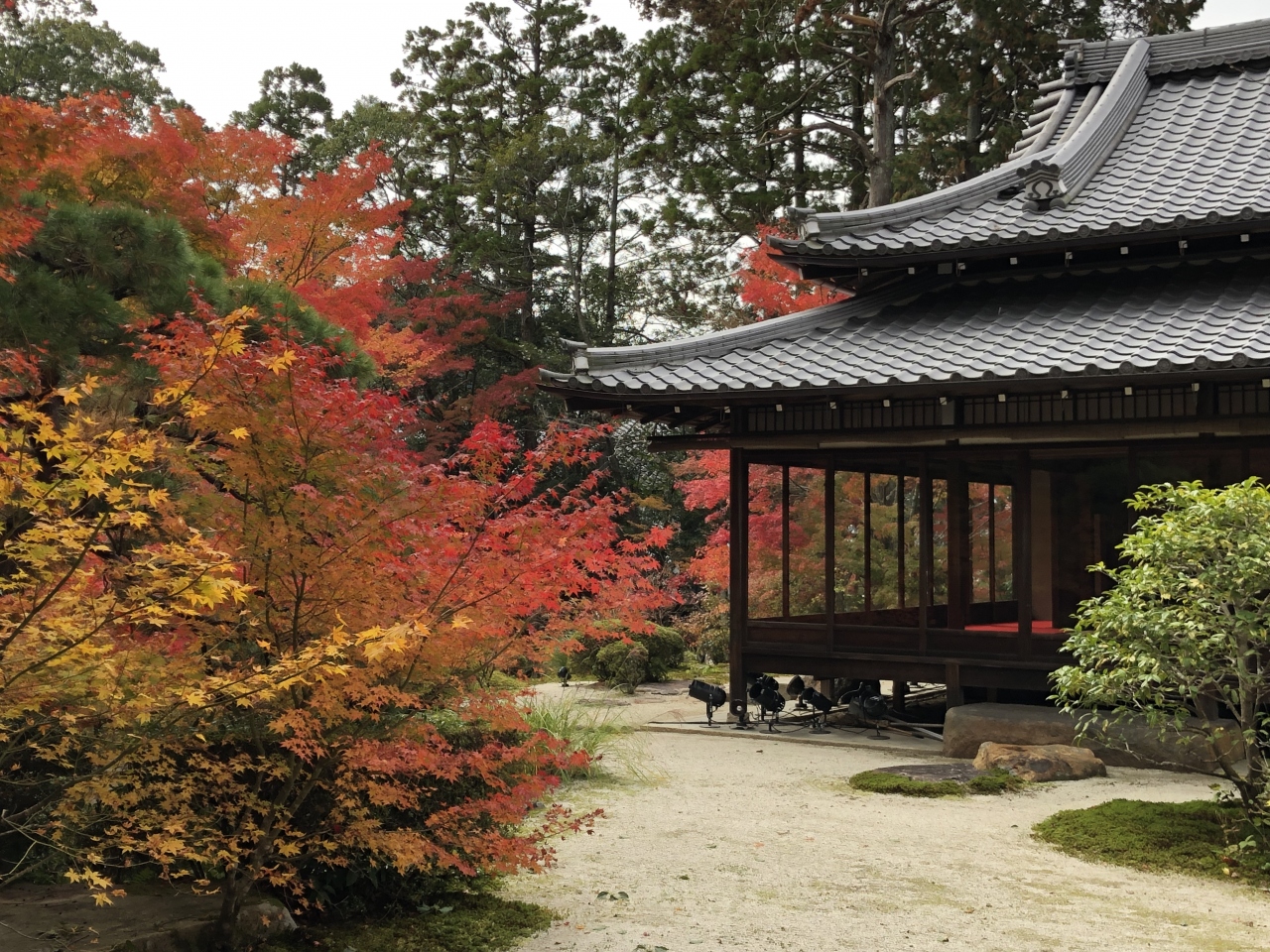 中に入ると、本堂前庭の枯山水庭園と、書院南庭の池泉回遊式庭園と、異なる種類の庭園があり、いずれも紅葉が素晴らしい。