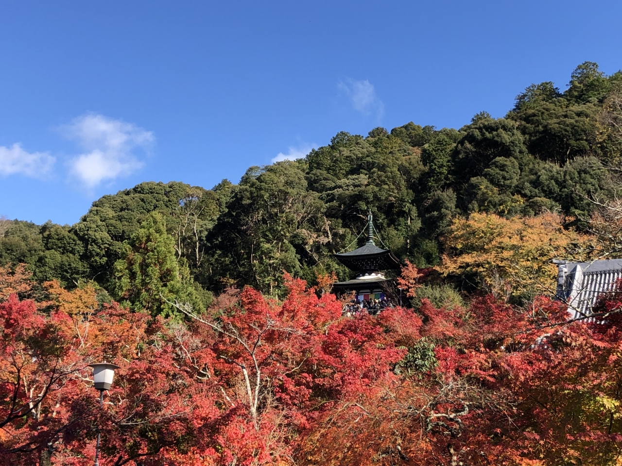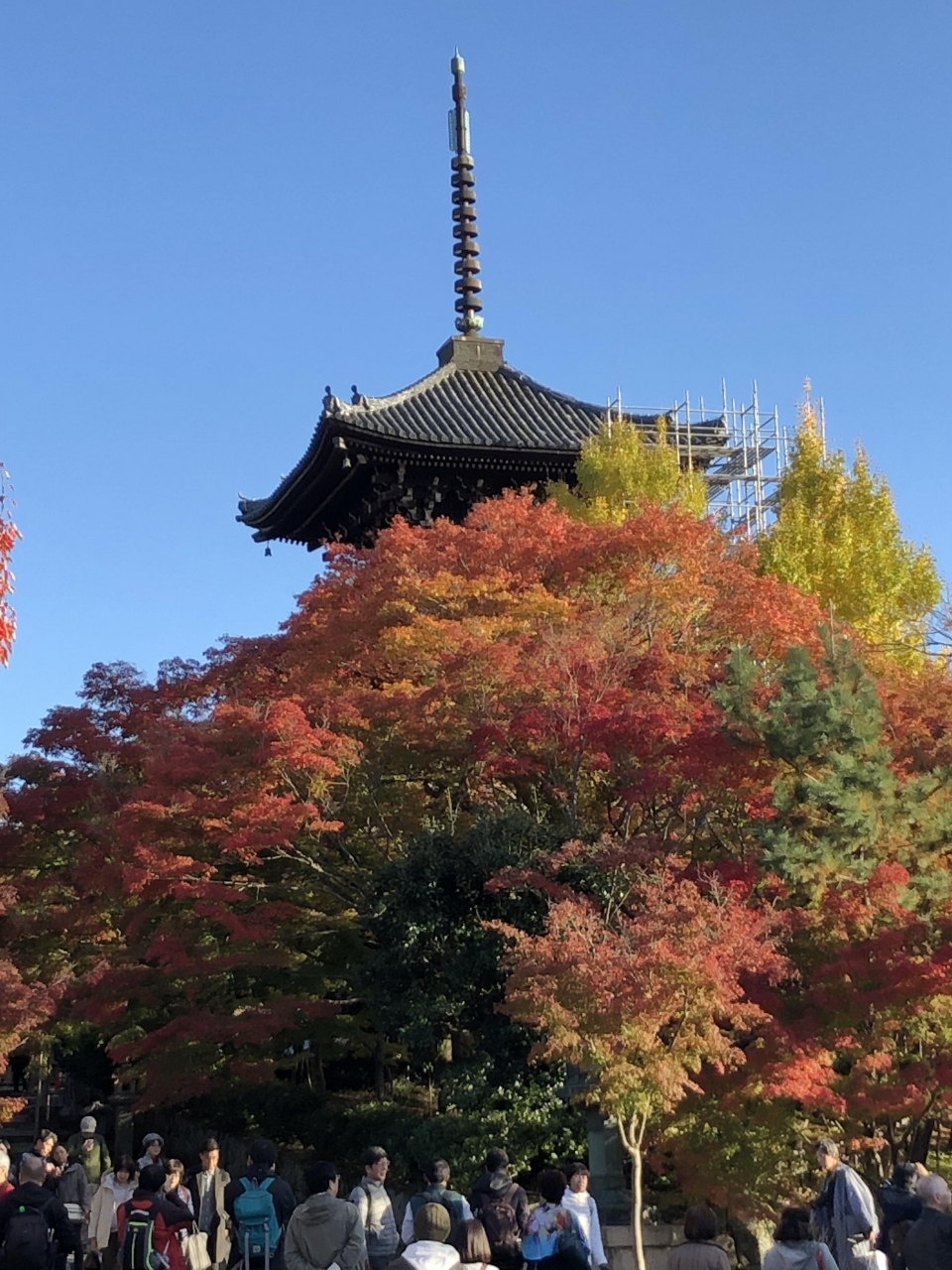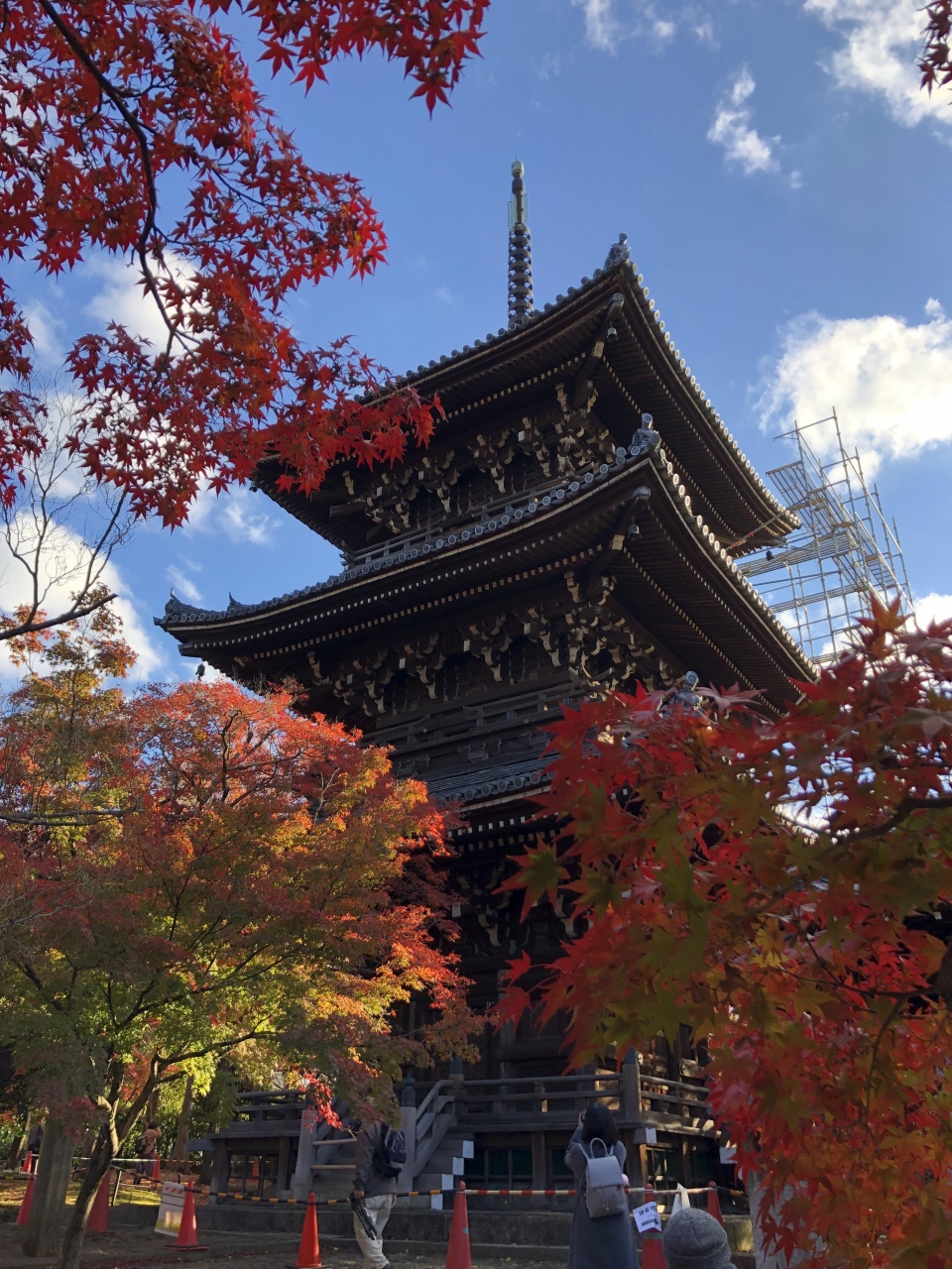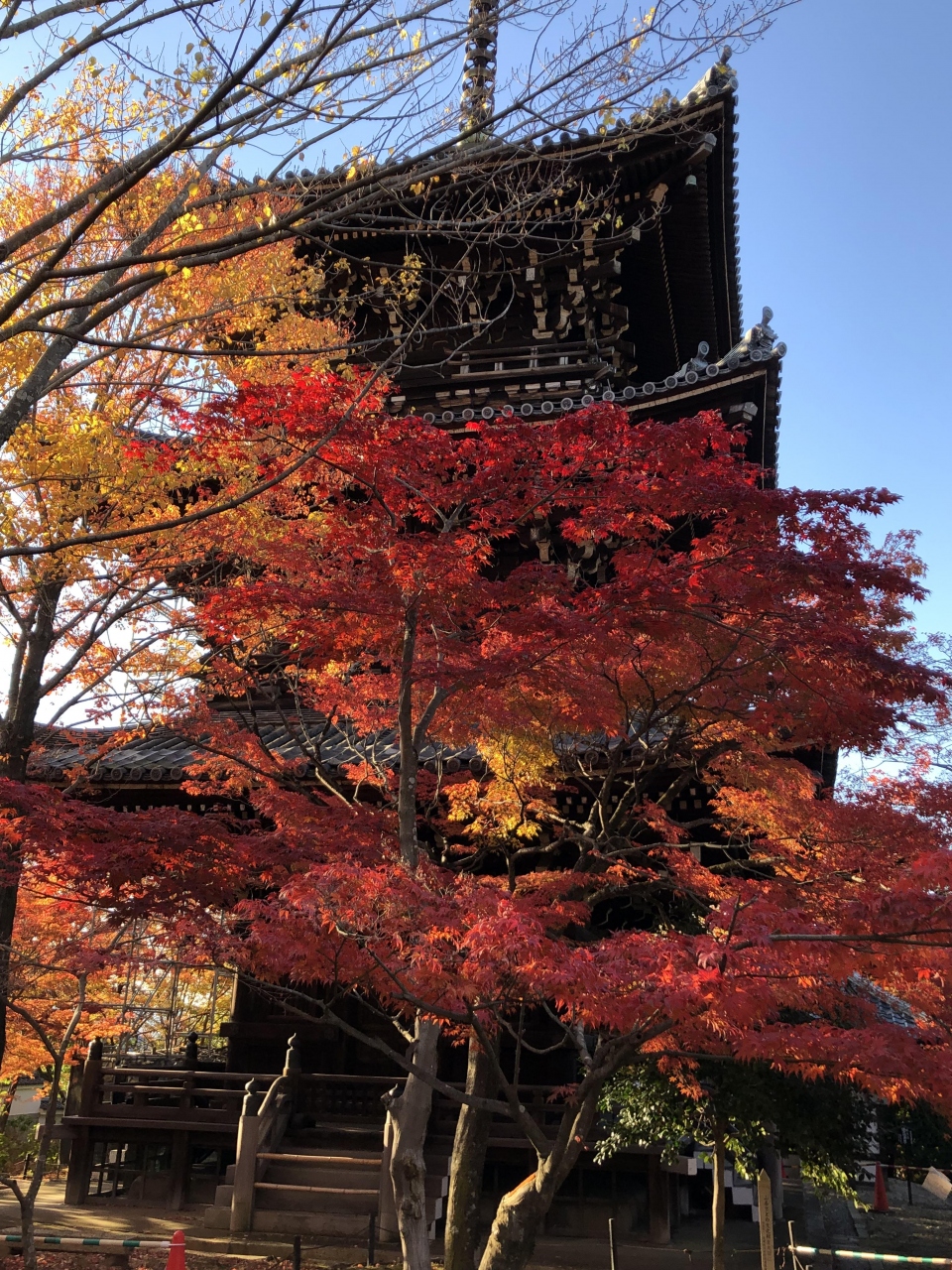 赤や黄色の葉に彩られた三重塔は、まさに「インスタ映え」するシャッタースポット。