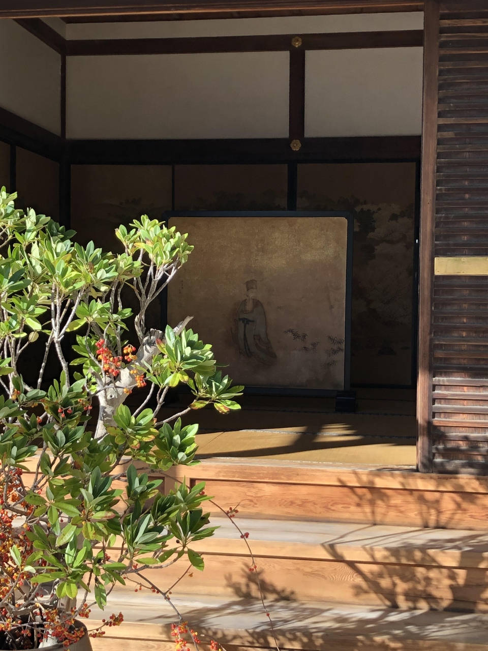 中に入ると、ボランティアガイドさんの説明で、本尊の如意輪観音像の説明がある。書院に上がると、狩野派の絵師によるといわれる障壁画が鑑賞できる。