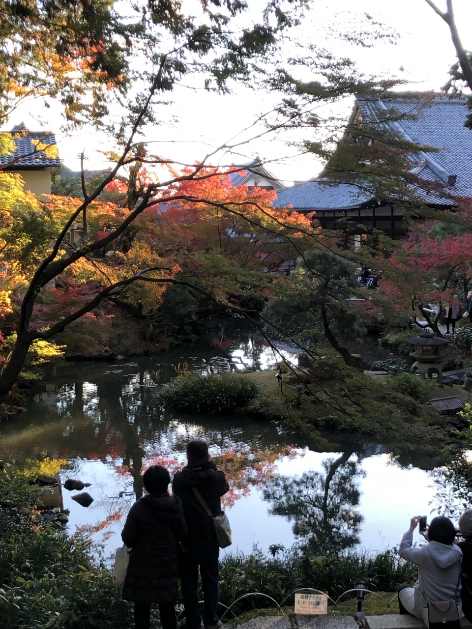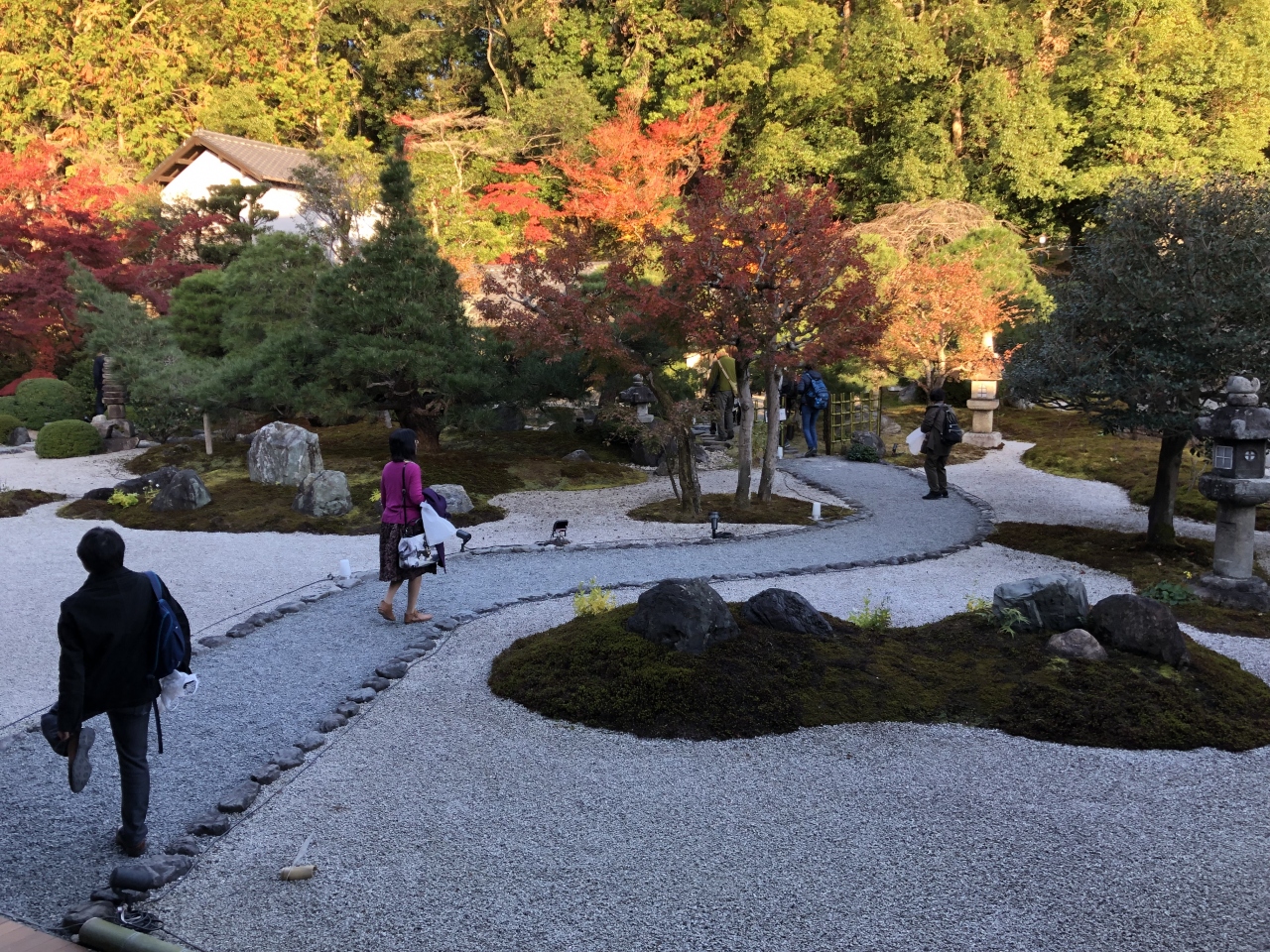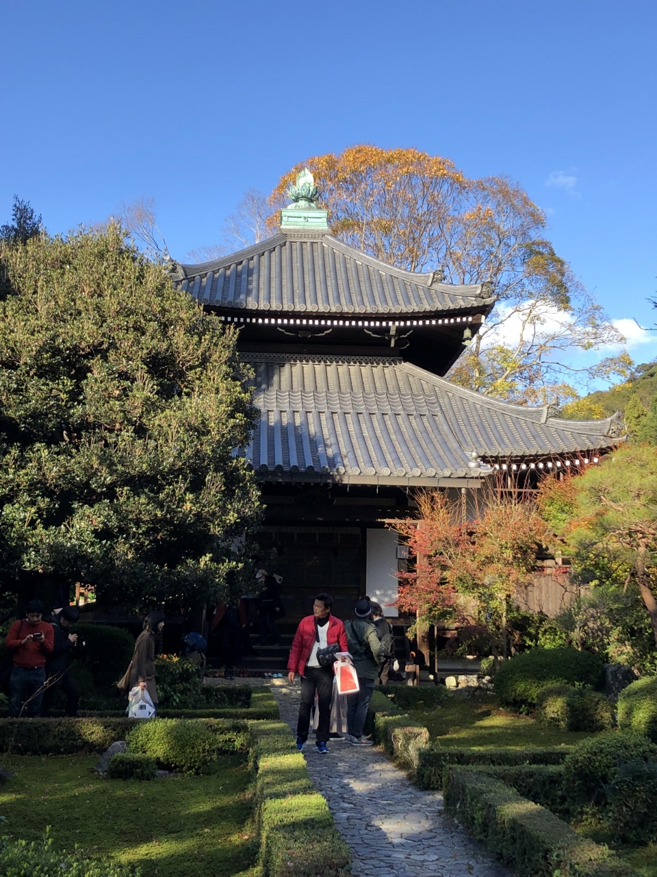 紅葉の時期は、東福寺と人気を二分するのではないだろうか。3連休の中日ということもあって、昼過ぎに到着すると、拝観券売場の前には長蛇の列ができていた。もっとも思ったほどの時間はかからず、場内へ。