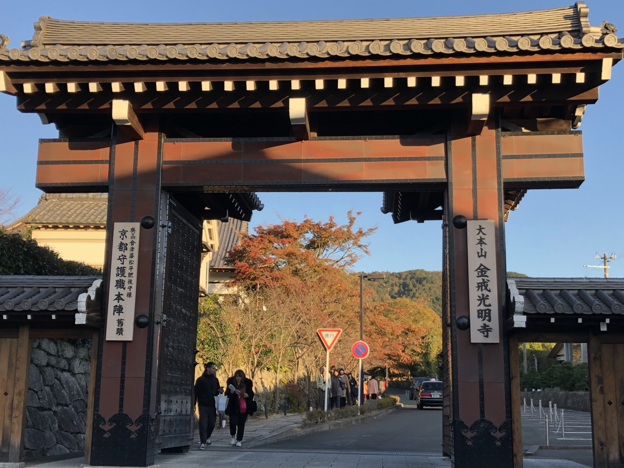 真如堂のすぐとなりにある金戒光明寺。こちらも境内だけなら拝観料は不要だが、11/9~12/2の間、庭園や伊藤若冲の「群鶏図」などが公開されている。
