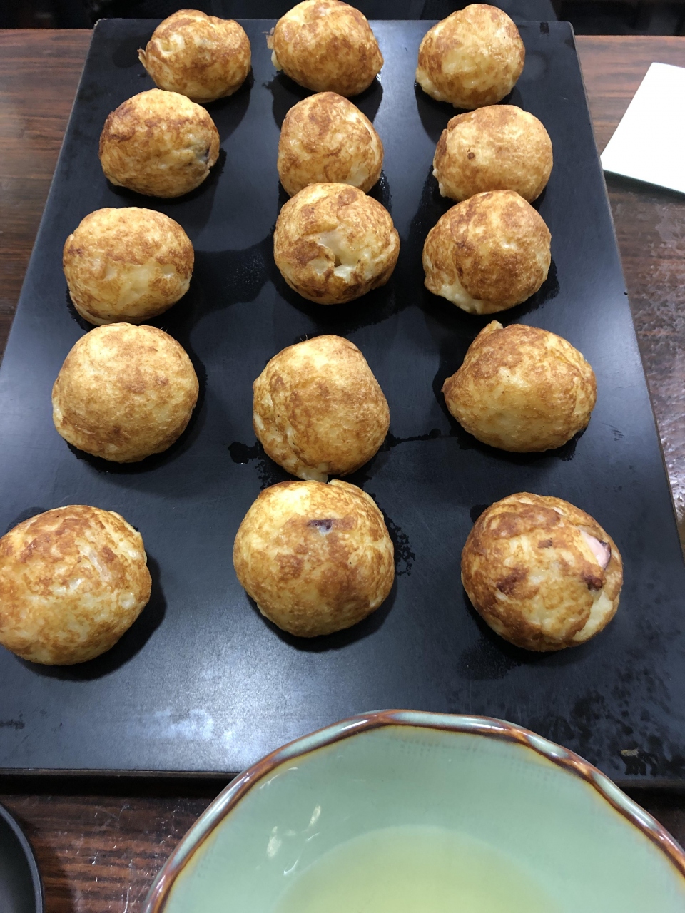 せっかくなので、本場・明石焼きを食べてみようと店を探したが、夜まで開いている店が少なく、駅前の「たこ磯」へ。満席ですぐには入れなかったが、回転は良くてまもなく着席できた。