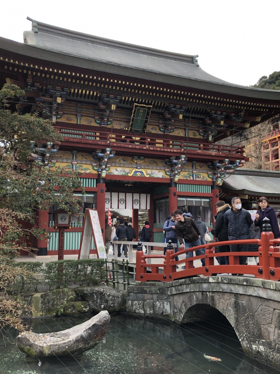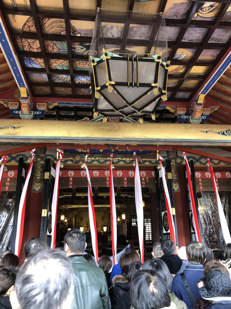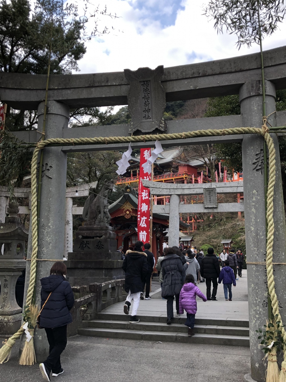 「初詣渋滞」には慣れているので、早々に途中下車。残り2キロ弱を歩いて目的地まで向かいます。参道も思った以上に参拝客が多く、「人間渋滞」を味わうことに。