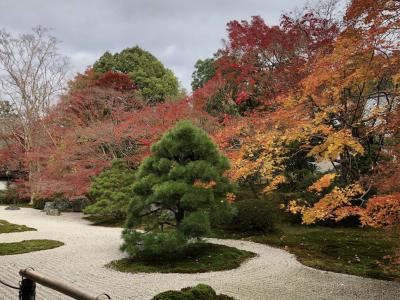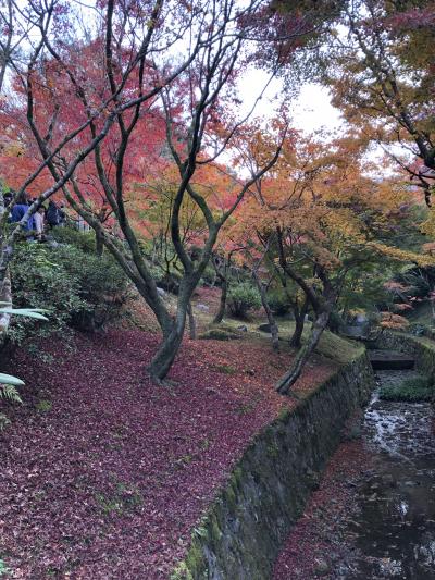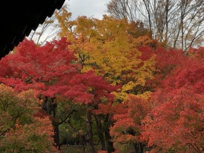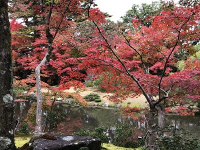 母屋から見る、琵琶湖疎水の水を引いた開放的な庭園の眺めは素晴らしく、紅葉の色も鮮やかだったが、天気が今一つだったのが残念。