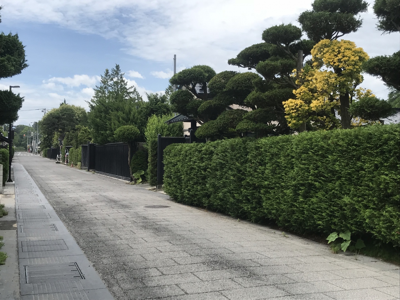 江戸時代の主屋がいくつか残されており、昔ながらの門や生垣が並んでいる。