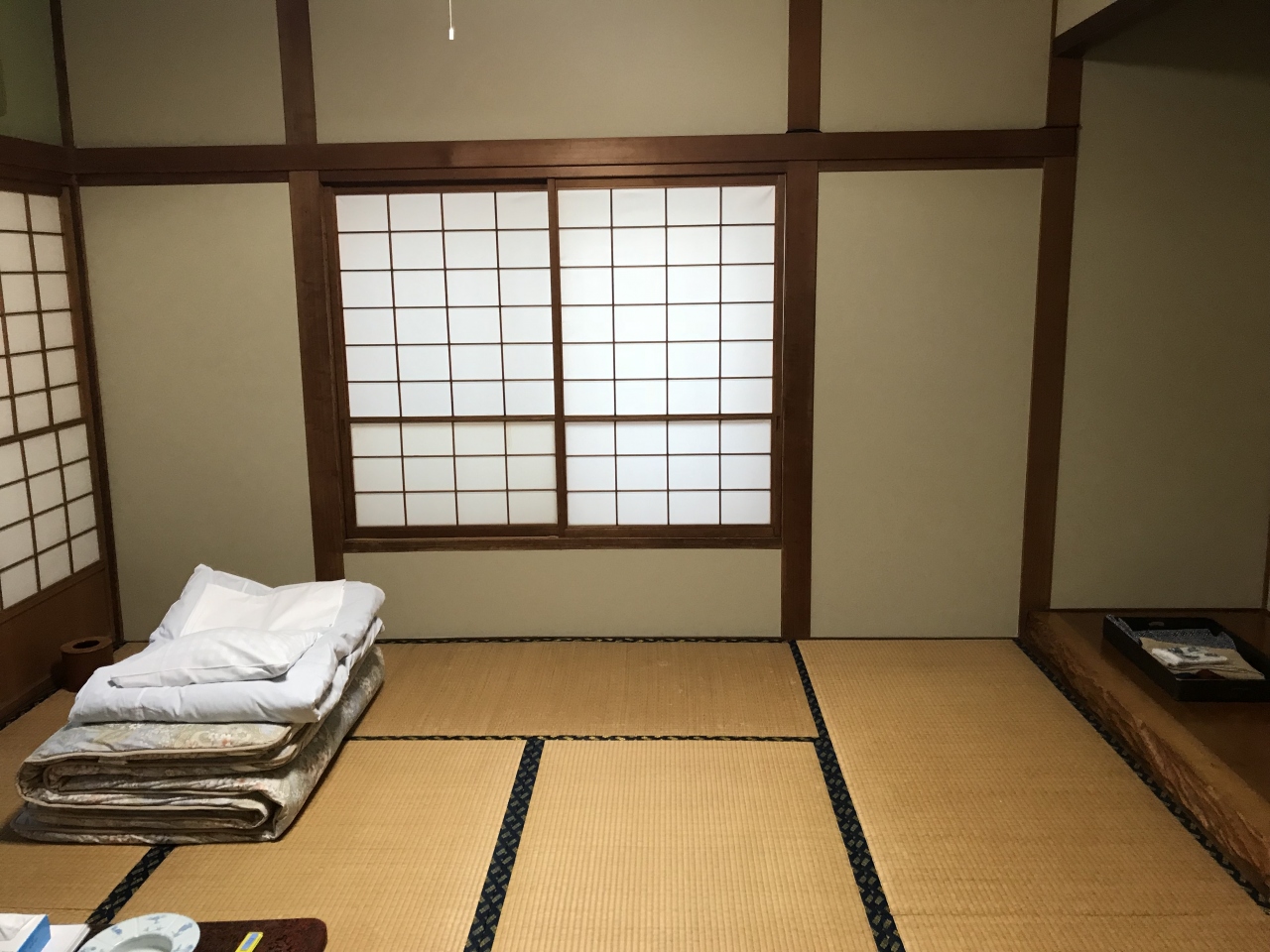 木造2階建の本館の部屋に泊まる。廊下を挟んで両側に襖が並んだいるのに驚いたが、施錠はできる。6畳の小ぶりな部屋だが、昭和レトロ感満載で、嬉しくなる。まずは男女入れ替えの「久安の湯」へ。湯船も床も全て木造で落ち着く。