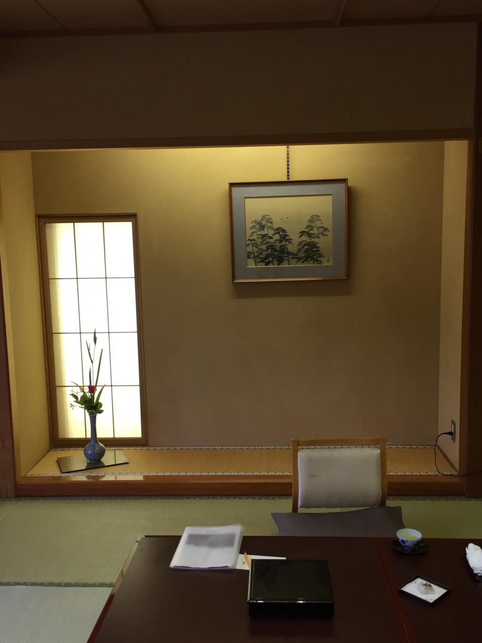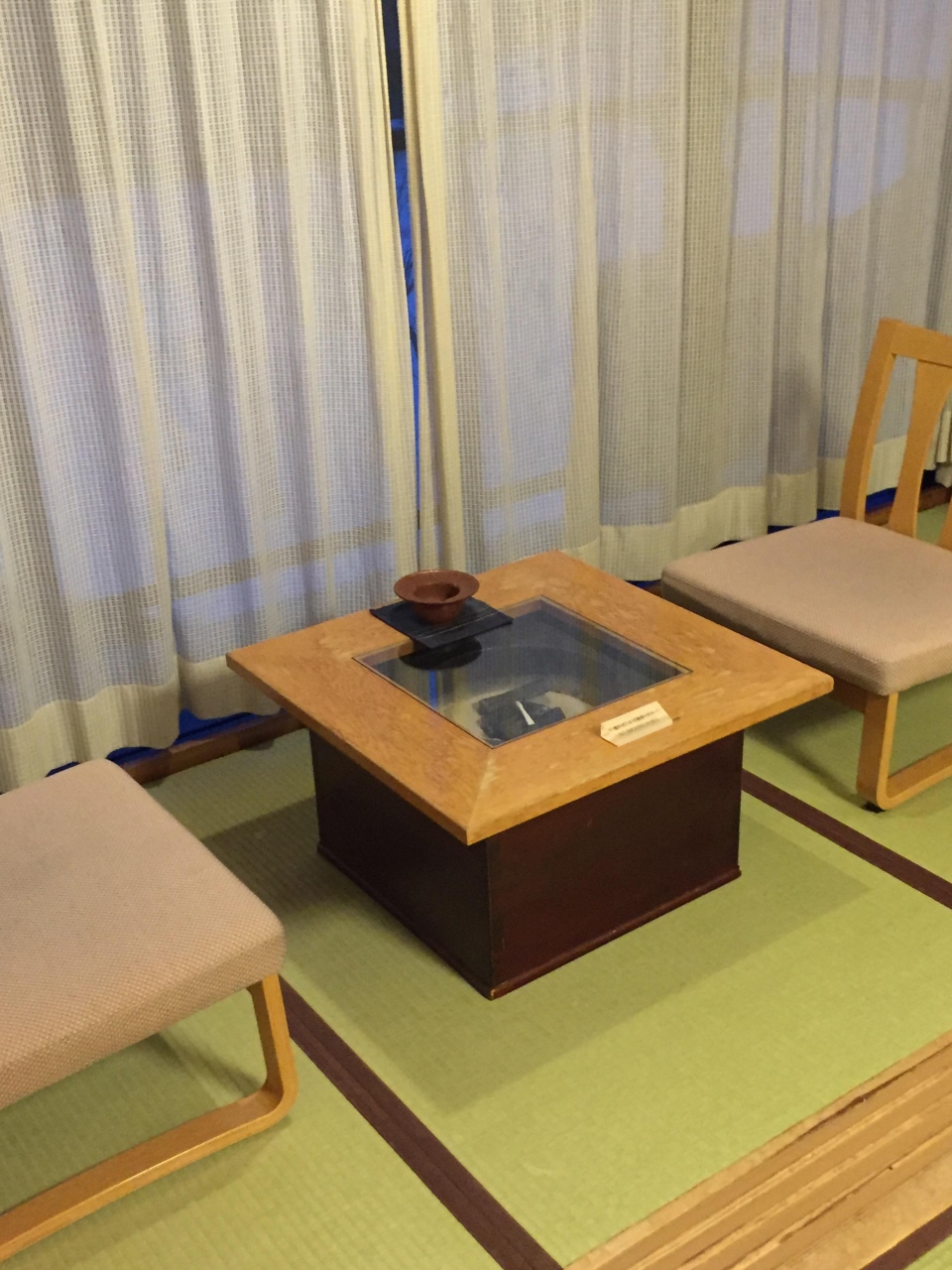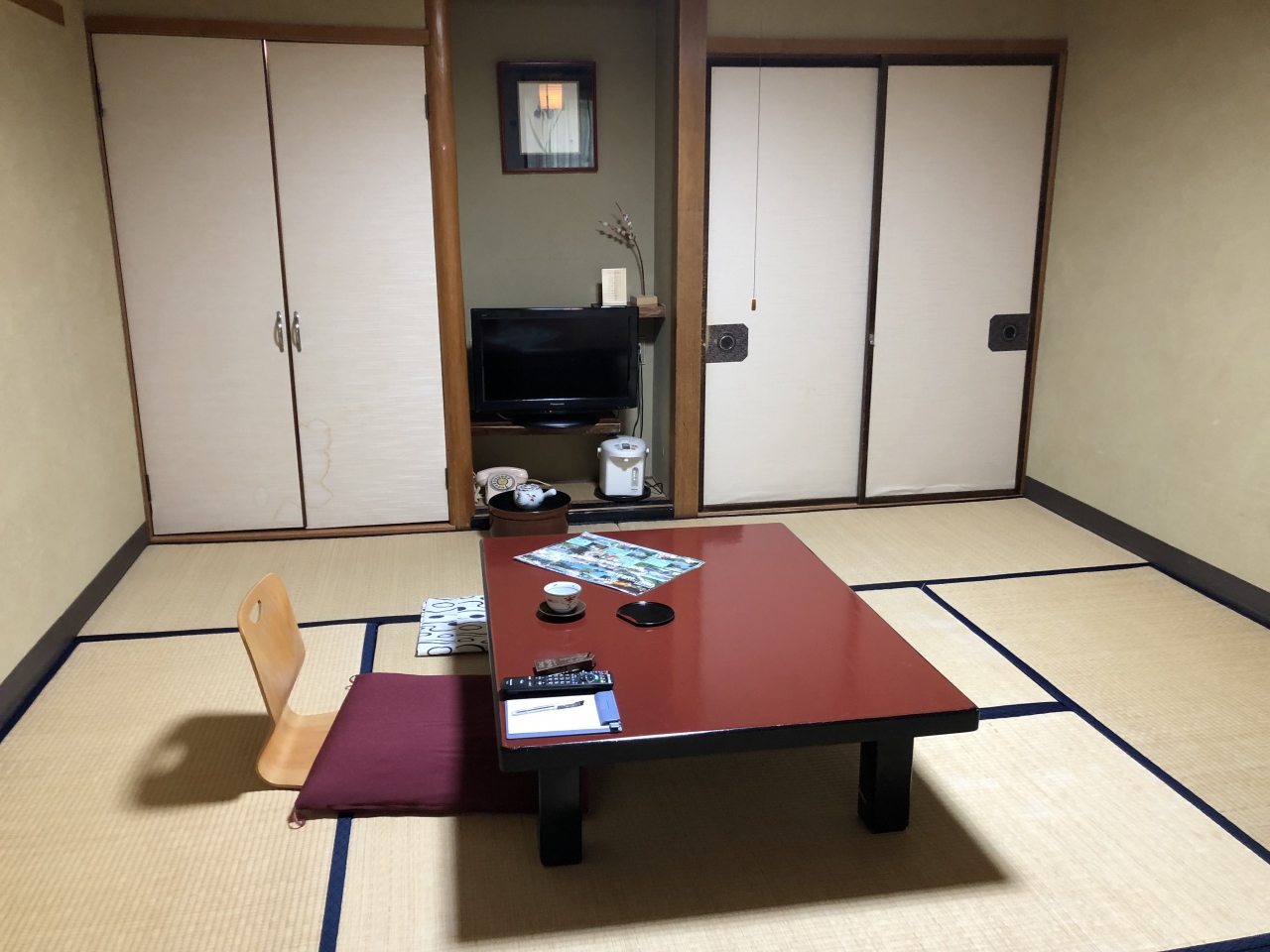 6階のエレベータ近くの部屋は、12畳の和室に、チェアとテーブル。