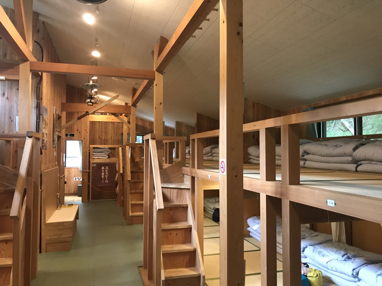 今回通された部屋は、割と最近改装されたと思われる2段ベッドの部屋。多客期では無かったので、「1つの布団に2人」などということもなく、ゆっくりと休むことができた。