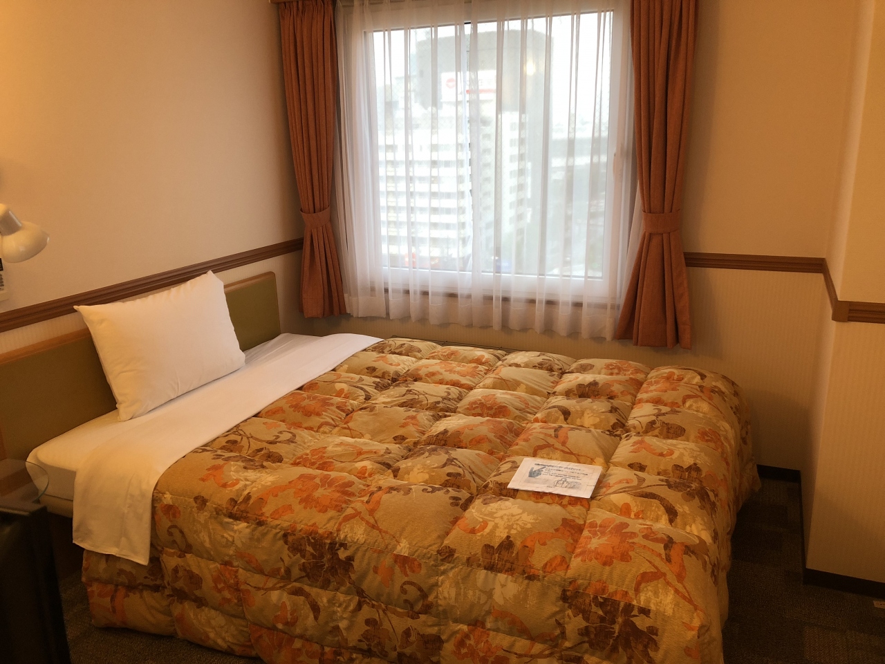 今回の部屋は、海の見えない側のかなり狭いシングルルームだが、3連休直前の2食付きで1万円強で泊まれる部屋なので、文句は言えまい。