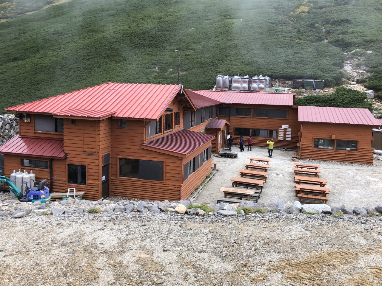 初代の山小屋は1963年の完成で、現在の建物は2011年に新築されたもの。小屋の内部はログハウスのような造りで、とてもオシャレな雰囲気を醸し出している。